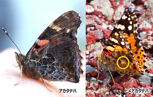 これは、昨日(9月21日)のことだったのですが、博物館にやってきた、互いによく似た2種類のタテハチョウ科のチョウが見られました。これらについて、前回と前々回、続けて紹介してきましたが、見分けのポイントって何か、あらためて整理して見たいと思います。 繰り返しになりますが、両者はよく似ています。でも、ヒメアカタテハの方が少し小さめです。それからヒメアカタテハには、後ろ翅の裏面に、白い三角形の斑紋が見られます。その辺りが、見分けていく目印になるのだそうです。(手元の図鑑の知識の受け売りです)。
