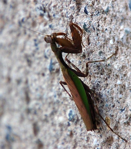 博物館の正面玄関の横の外壁に、ヒメカマキリがいました。 カマキリ目ハナカマキリ科ヒメカマキリ亜科に属する種で、日本で見られるハナカマキリ科のカマキリはこの種などに限られているそうです。 とても小さなカマキリですが、カマは立派です。 あんなところにいたんです。