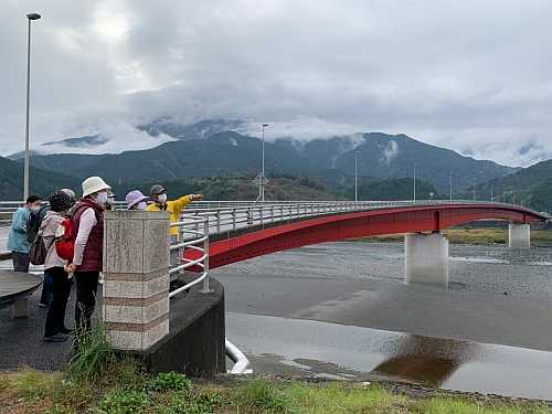 少し雨がぱらつく中、最初の見学は“赤い橋”南部橋のたもとから始まりました。この南部橋、以前は、もっと上流のあの場所に、5連ワーレントラスという形式で架かっていたんですよ・・・みたいな説明をしているところです。 ここから見て、あそこに連なる低いお山、あれは南部氏の歴史にゆかりのあるとされる南部城山です。いま現地に見られる遺構は、天正10年の騒乱の年頃までに、大幅に改修されている可能性があります。一部には煙硝蔵と言い伝えられている部分もありますよ・・・といった説明が続きました。 お次は、内船八幡神社です。ここでは・・・ 赤い鳥居の参道石段の上の左右の大木ですが、右はクスノキ、左はイチョウで、ともに南部町の文化財・天然記念物に指定されています・・・的な解説が行われました。 いよいよ八幡さんと向かって左隣に鎮座の護国神社の見学となりました。小雨が降ってきたので、境内の四阿(あづまや)の下で、八幡神のことや社殿の建築に、下山大工が関わっていることなどを確かめ、参加者の一人、E藤さんより下山甚句の一節のご披露をいただくこともできました。 八幡さんと護国神社の並びはこんな感じ・・・資料3ページからです。 次いでは・・・、 登って、登って、休んで、登って、こちらは内船寺さんです。 「正住山」の山号額を掲げた山門を前に、お寺さんの歴史などをおさらいしています。「内船寺」と書いて「ないせんじ」といいます。もとは四条金吾(頼基)さんの所領の1つである内船のなかに設けられたお屋敷(別荘・・・みたいなものかな)でしたが、金吾さんご夫妻は日蓮さんの教えにに深く帰依し、そのお屋敷を日蓮宗のお寺とすることになった、といった経緯を確かめました。 この内船寺さんのご本堂の裏手、少し上がったところに、四条金吾ご夫妻の墓所があります。 この正面の石造りの龕(がん)の中に、ご夫妻の五輪塔が並んで納められています。いつもは扉が閉ざされていて拝見できませんが、今日の資料の6ページに実測図が掲載されています。 こちらが資料に載せられた四条さんの五輪塔となっています。 まぁざっと、このような感じに歴史遺産を見て、感じて、考えた時間が流れました。(初期投稿:2021年11月2日20時20分 加筆投稿:11月3日10時13分 記事タイトル修正:11月3日23時28分)