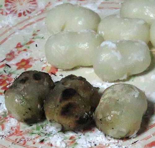 道祖神祭のまゆ玉団子のビフォー・アフターです。