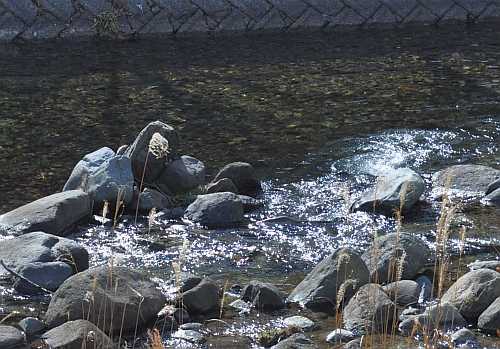 翌1月24日の月曜日、ほぼ同じ位置で下部川の流れをチェック。おや、激しく