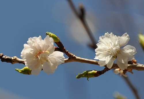 こちらの枝では、左手の花が咲き出して数日、徐々にピンクがこくなってき