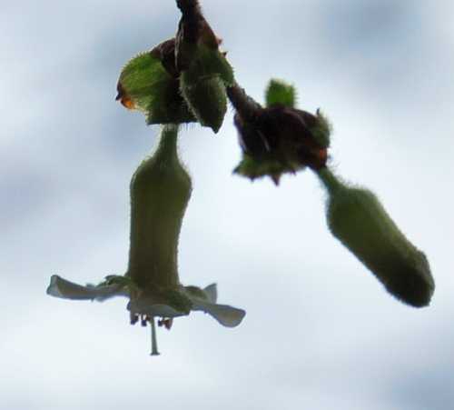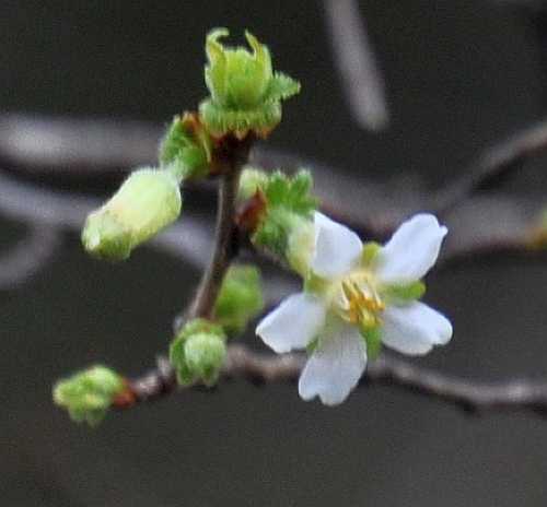 チョウジザクラの開花は、こんな感じ、それが数輪見られたので、開花宣言!