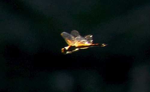 森陰の暗い部分を背景に、ウスバキトンボの1個体を撮ることができました。