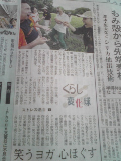 先日、土曜日の日本経済新聞夕刊の一面に写真つきでラフターヨガが掲載されました。これは、ストレス世代のサラリーマンのお父さん達にこそ、笑いが必要と言うことで、取材を受けました。男性は、会社での地位やプライドがあると、なかなか人前では笑えないようですが、笑顔クラブに入って笑顔が出来たら、笑いの渦に巻き込まれて大笑いすると職場や家庭でのコミュニケーションが上手く行きますよ~ラフターヨガのHPはこちら笑顔クラブのHPはこちら笑いは喜びの力です。