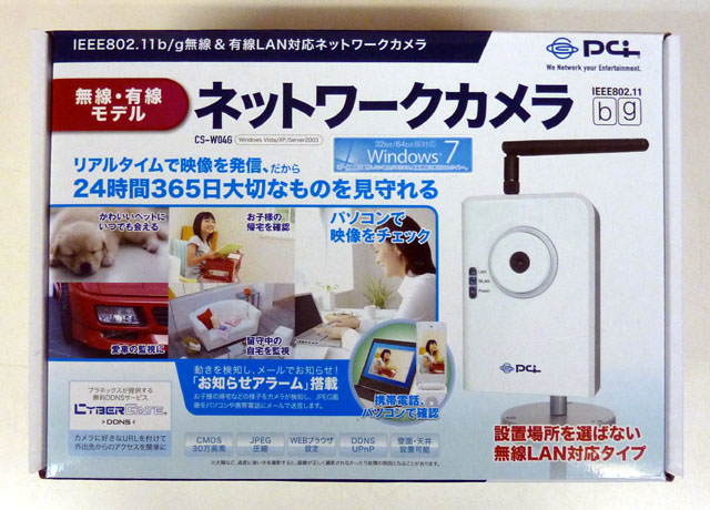 この間の買い回りキャンペーンでプラネックス製ネットワークカメラ CS-W04Gを購入しました。何がしたかったかというと…サンワサプライのワットチェッカー(TAP-TST5/TAP-TST7)は5,000円程度で比較的精度の高い消費電力測定ができるのでいい製品だと思うのですが、パソコンにつないでデータのログをとったりすることができません。もう少し高価になりますが、ワットアワーメーター SHW3Aであればオプション(SHW3-PCC9)を購入すればパソコンに接続できるようですが、本体が3.1万、オプションが1.7万の合計5万円弱必要となってしまいます。ワットチェッカーの測定値をとりあえず、別の部屋から確認したり、ゆくゆくはコンピュータにデータを記録したいという思惑から、なぜかネットワークカメラを購入することにしました。ネットワークについて調べてみると、・Panasonic・Planex・コレガ・Logitec等から商品はでていて、1万円台から4万円程度までで機能によって値段がかなり違ってきます。とりあえず今回はとにかく安く購入するということで調べたところ Planexの製品が目に付きました。メーカー型名接続画素数パン・チルト消費電力価格楽天価格PlanexCS-TX04F 有線接続 30万画素 ×3W12,800円6,454円~仕様PlanexCS-W04G 無線・有線接続 30万画素 ×3.84W14,800円7,980円~仕様PlanexCS-WMV04N無線・有線接続 130万画素 ○4.5W38,000円26,250円~仕様コレガCG- WLNCMNGL無線・有線接続 30万画素 ×5.4W16,800円12,400円~仕様PlanexのCS-W04Gなら無線対応で8,000円程度と,とにかく安く購入できます。あやしい外国製の有線カメラはもう少し安く購入できるようですが、それでも5,000円程度するので、安心感をとって CS-W04Gを7,980円で購入しました。パッケージは表がこんな感じ裏はこんな感じ箱をあけると、中身は同梱物を一通り取り出してみるとカメラを組み立てるとこんな感じです。「らくらく!かんたん設定ガイド」を見て設定を開始しました。まずは有線接続で http://192.168.1.200/ をパソコンから開いて、無線の設定をします。SSID、暗号化キーを入力後、有線ケーブルをとりはずすと、無線での接続が開始します。SSID等が正しく入力できていれば、無線で http://192.168.1.200/ にアクセスができるようになります。そしてカメラのページを見ると冷蔵庫の消費電力がリアルタイムに別の部屋のパソコンから見ることができるようになりました。これだけのものが8,000円で入手できるとは、世の中も進化したものです。CS-W04G 7,980円~