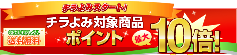 今日が期限の楽天ポイントがあるので、何か買おうと思って、楽天市場を見ていたのですが、…チラよみ象商品ポイント最大10倍キャンペーンというものをやっているようです。・楽天ブックスで全品ポイント5倍(+4%)2010年10月28日(木)10:00 - 2010年11月4日(木)9:59楽天ブックス(PC・ケータイ)で「対象商品」を1回のご注文で合計金額2,000円(税抜)以上ご購入(ご注文完了)2010年12月末利用期限の期間限定ポイントを付与・チラよみ対象商品ポイント6倍(+5%)2010年10月25日(月)10:00 から 2010年11月4日(木)9:59 まで 【チラよみ】の対象商品 2010年12月末利用期限の期間限定ポイントを付与 の二つをあわせてポイント10倍(+9%)ということのようです。チラよみ対象商品はどうやってみわければいいのだろうと探してみると楽天ブックスの検索で「チラよみ対象商品」と一緒に探したい本のキーワードを入力して、検索ボタンを押して検索される本であればよさそうです。チラよみ対象商品であれば、本の表紙の下あたりに立ちよみするというリンクボタンがあります。そのボタンを押すと立ちよみできます。立ちよみできるのは本の先頭数ページで、表紙等がちょっと解像度が悪いながら表示されます。せっかくなので、今日はチラよみ対象商品を購入することにしました。他にどんなポイントキャンペーンをやっているか確認してみると次のようなものがあります。・ヴィッセル神戸が試合に勝った翌日は全ショップポイント2倍2010年10月31日(日)AM0:00から2010年11月1日(月)AM9:59までエントリ対象試合:10月1日(金)から10月31日(日)まで⇒1/3(月)頃までに付与・38時間限定!エントリー&買いまわりで全ショップポイント最大10倍2010年10月31日(日)10:00~2010年11月1日(月)23:592011年1月20日(木)頃までに2011年1月31日(月)まで使える期間限定ポイント・86時間 ショップ限定ポイント5倍2010年10月30日(土) 10:00 ~ 2010年11月2日(火) 23:59 1月20日(木)頃までに、 1月31日(月)まで使える期間限定ポイントで付与します。先週末に引き続き、買いまわりキャンペーンをやっています。ショップ限定ポイント5倍キャンペーンのほうは自分が良く使うショップも含まれています。家電のSAKURA 楽天市場店Joshin web 家電とPCの大型専門店A-PRICE楽天市場店イーベストPC・家電館デジカメオンラインイーサプライ 楽天市場店サンワダイレクト楽天市場店上海問屋WebbyPC&家電《CaravanYU 楽天市場店》クレバリー楽天市場店エレコムダイレクトショップ秋葉館楽天市場店マウスコンピューター 楽天市場店自分が買い物するのはたいていコンピュータや家電のショップばかりです。