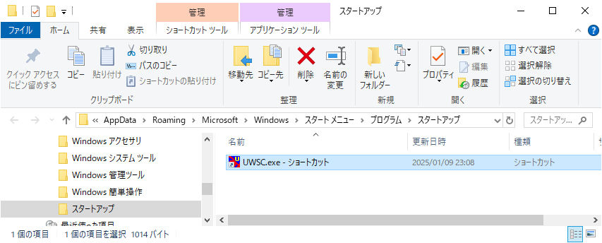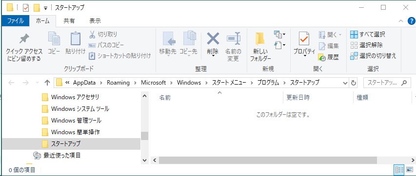 Windowsのスタートアップフォルダにショートカットを貼り付けます