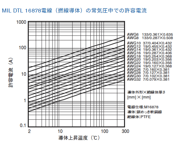 周囲温度が 30℃以上になる環境だと許容電流を少なく見積もらないとだめということになるようです。