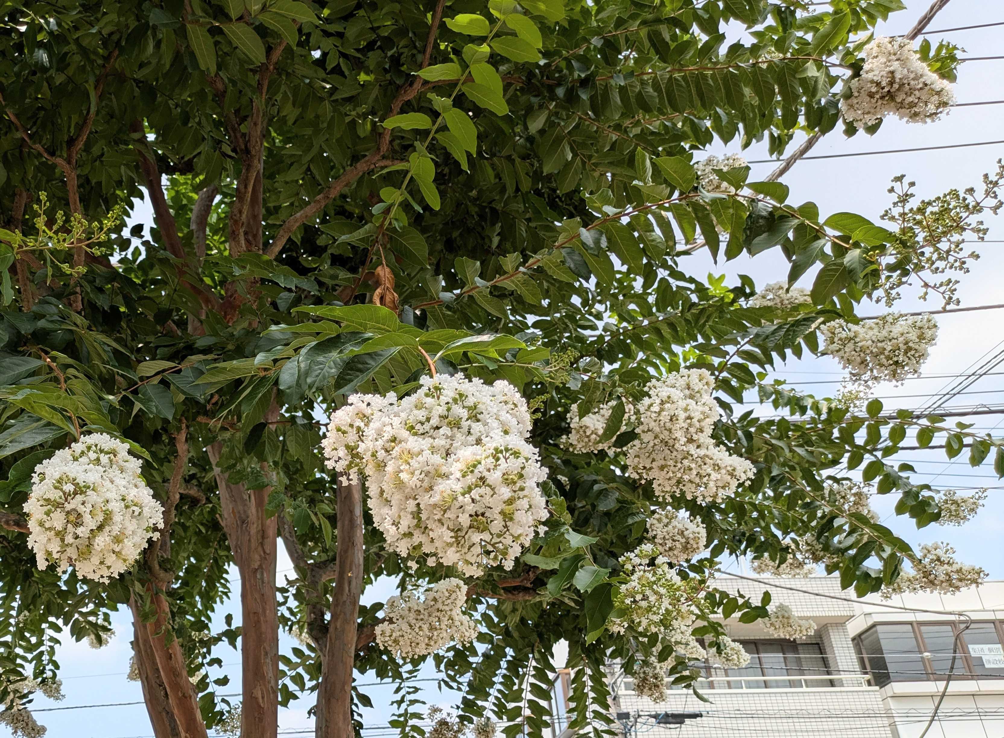 マンションの通路わきには2本の百日紅の樹があるのですが・・・今朝、ゴミ出しの際に見たらあれっ、白とピンク?混じって咲いてますよね?手入れのされていない低木の百日紅ですが・・・面白い咲き方をしていますもう1本は普通に(笑)ピンク一色なんですが・・・**********昨夜のごはん豚肉とブロッコリーの炒め物夫の購入してきた野菜の中にステーキ用と書かれた大きめの丸ナスがあったので焼いて甘辛味にしました野菜室が渋滞しているのでキャベツを積極的に使っています千切りキャベツは塩昆布とごま油でナムル風に味付け孫たちに作った五目御飯夫用に残しておきました**********今日は津波警報のニュースが続いています非難されている方も多いようです暑さも厳しき折体調を崩されないように、と願うばかりです