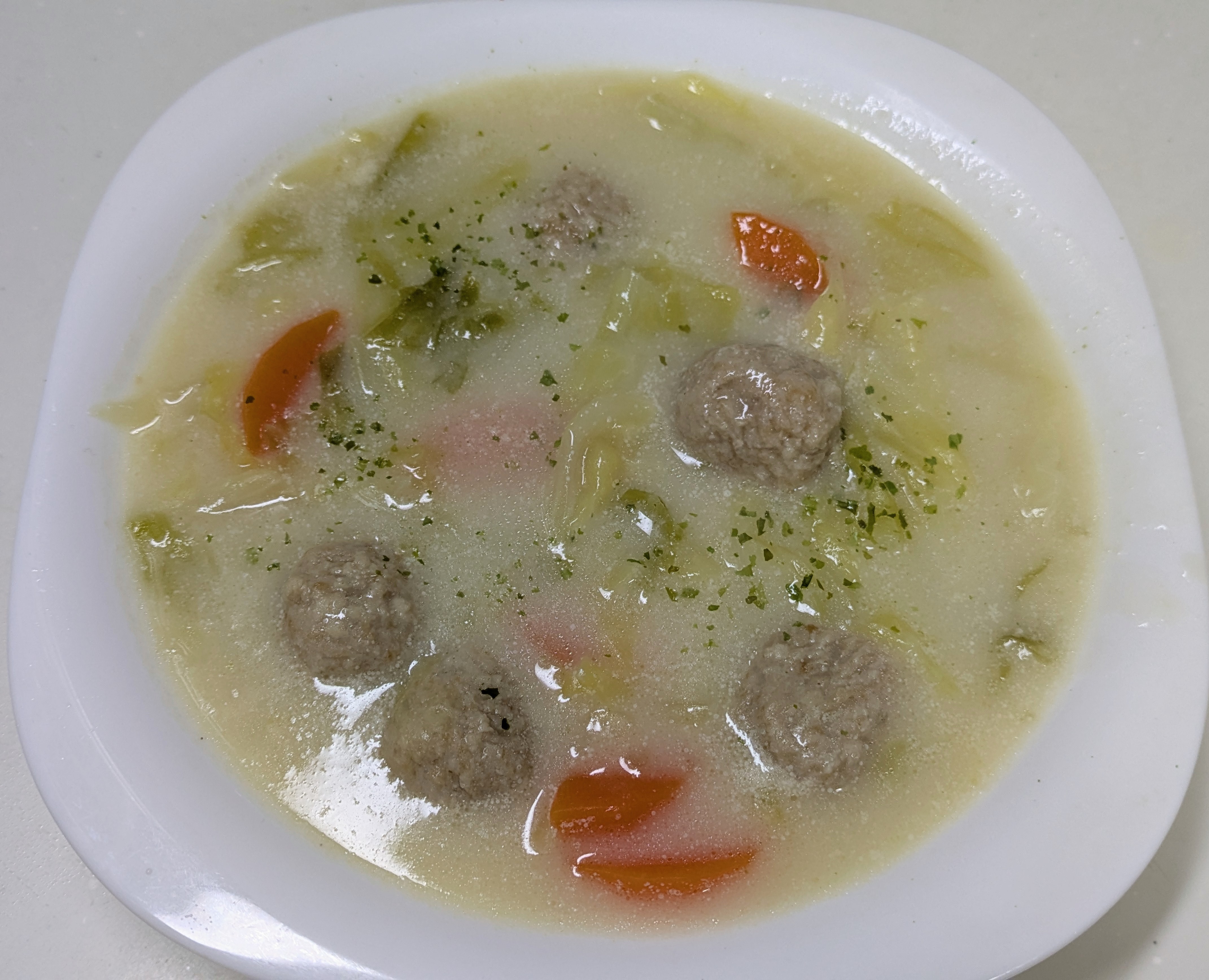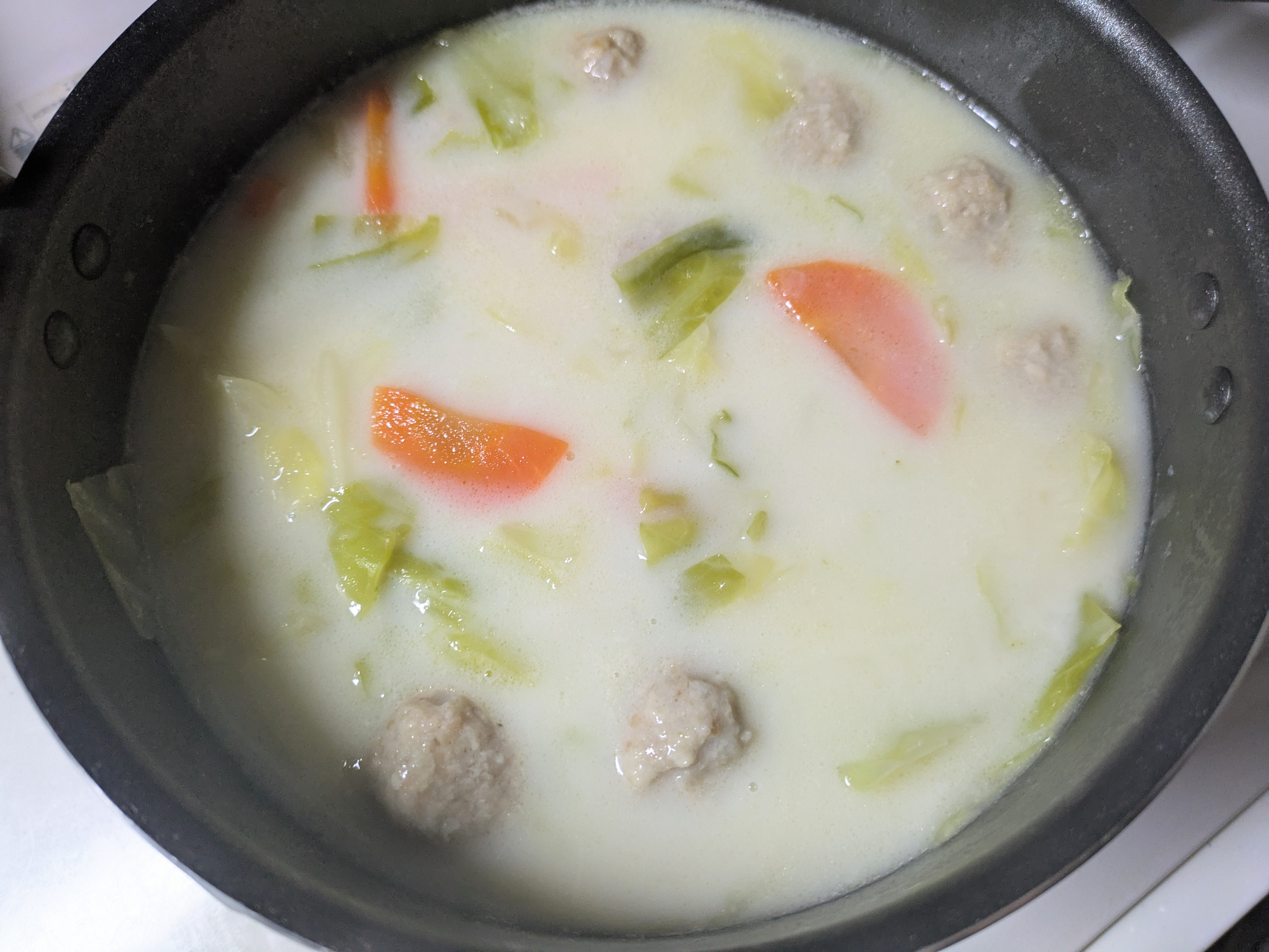 昨日の暖かいものはキャベツと肉団子のクリーム煮にしました