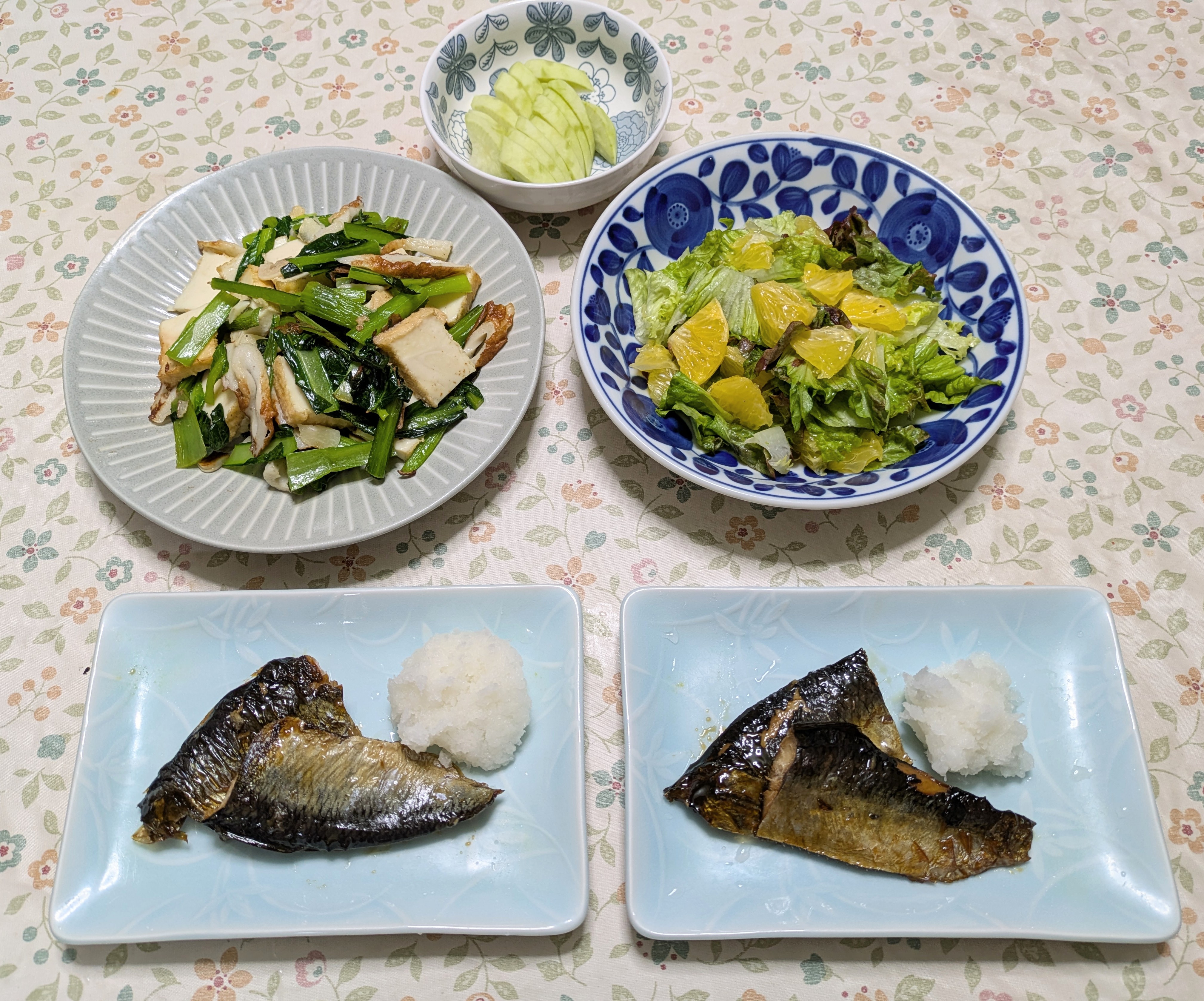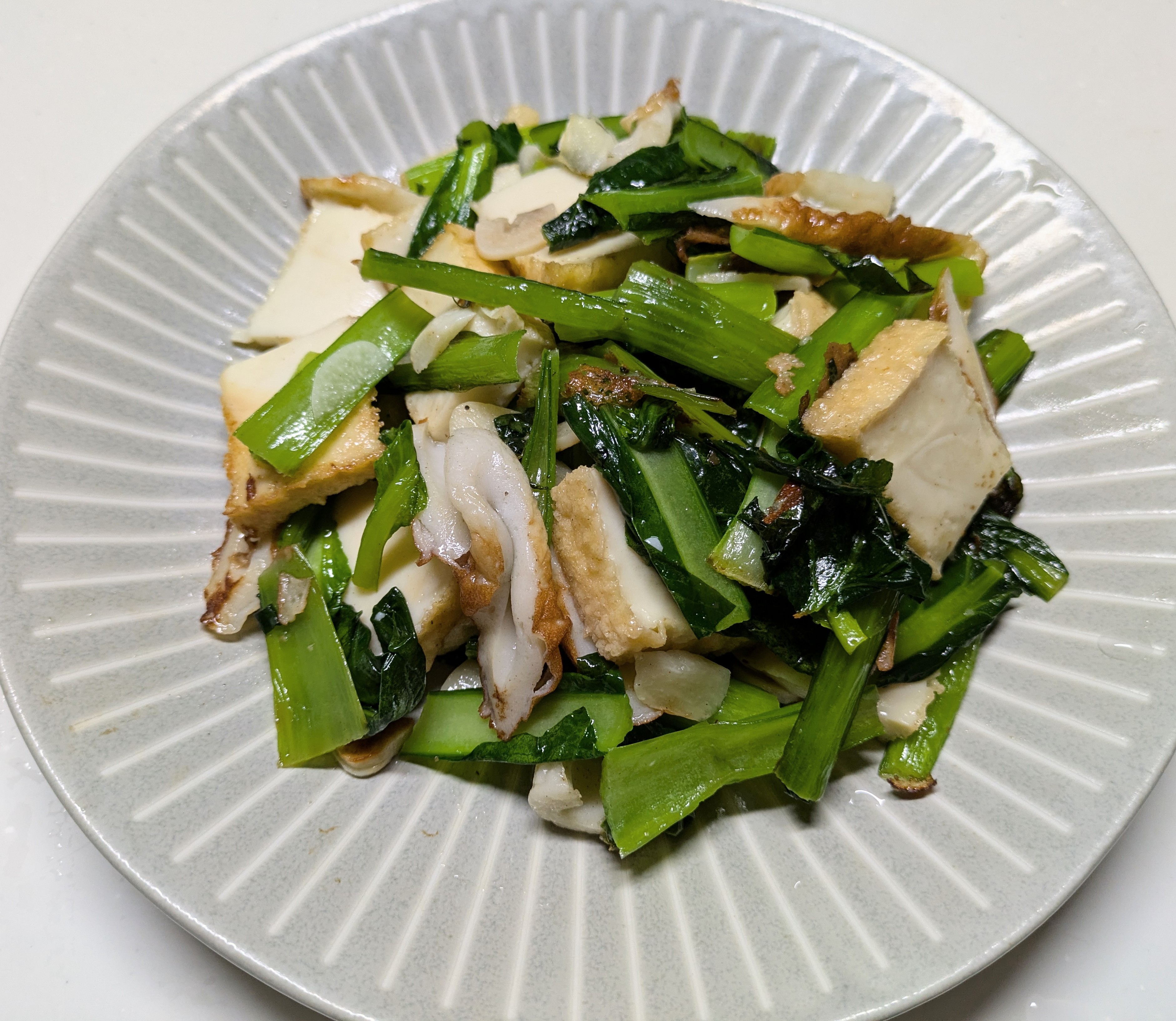 厚揚げ、小松菜、ちくわのガーリック炒め
