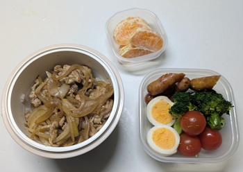 今日のお弁当は豚肉と玉ねぎの焼き肉丼