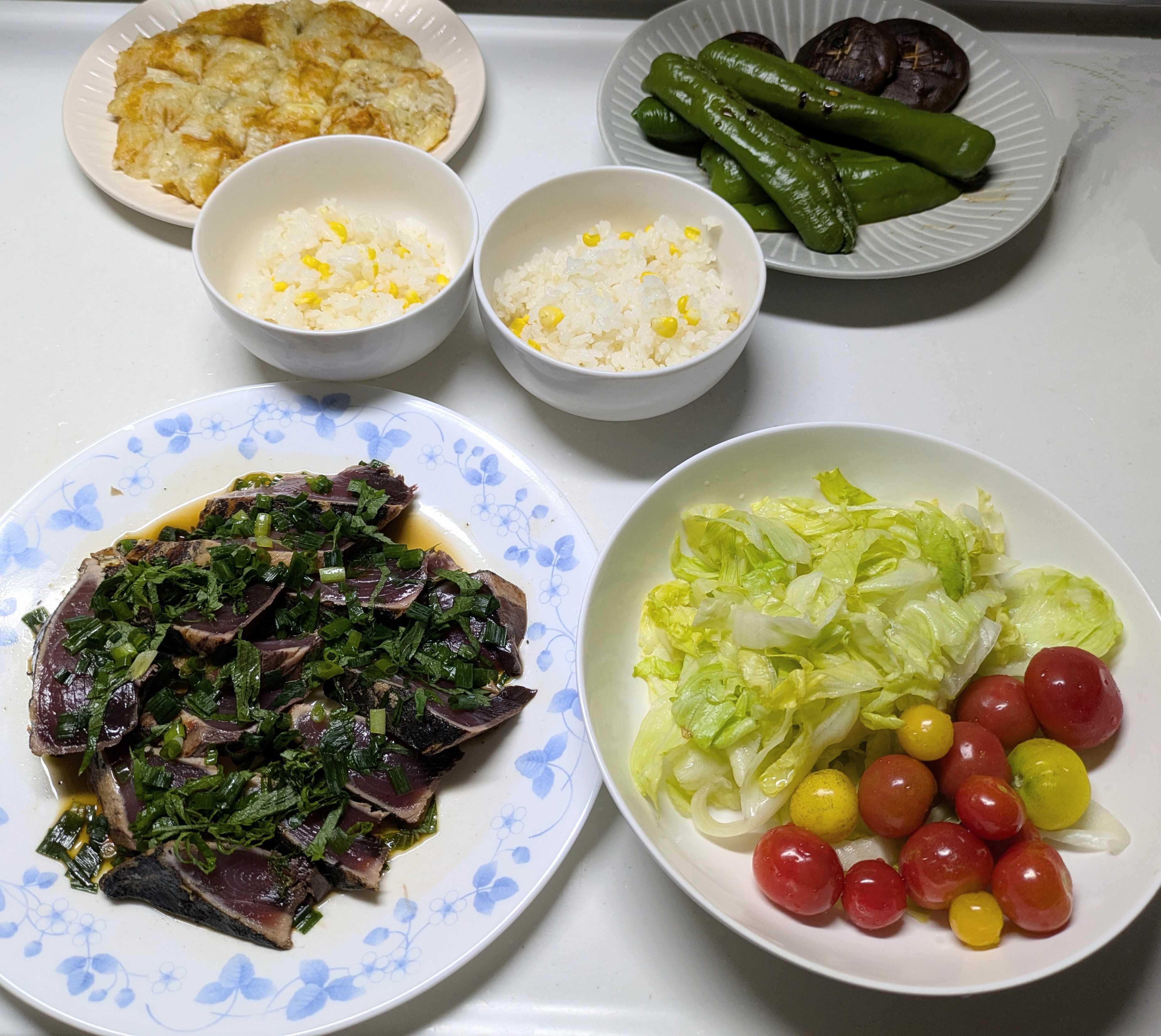 奥はエノキのチーズ焼きと、野菜焼き(ジャンボピーマンとシイタケ)