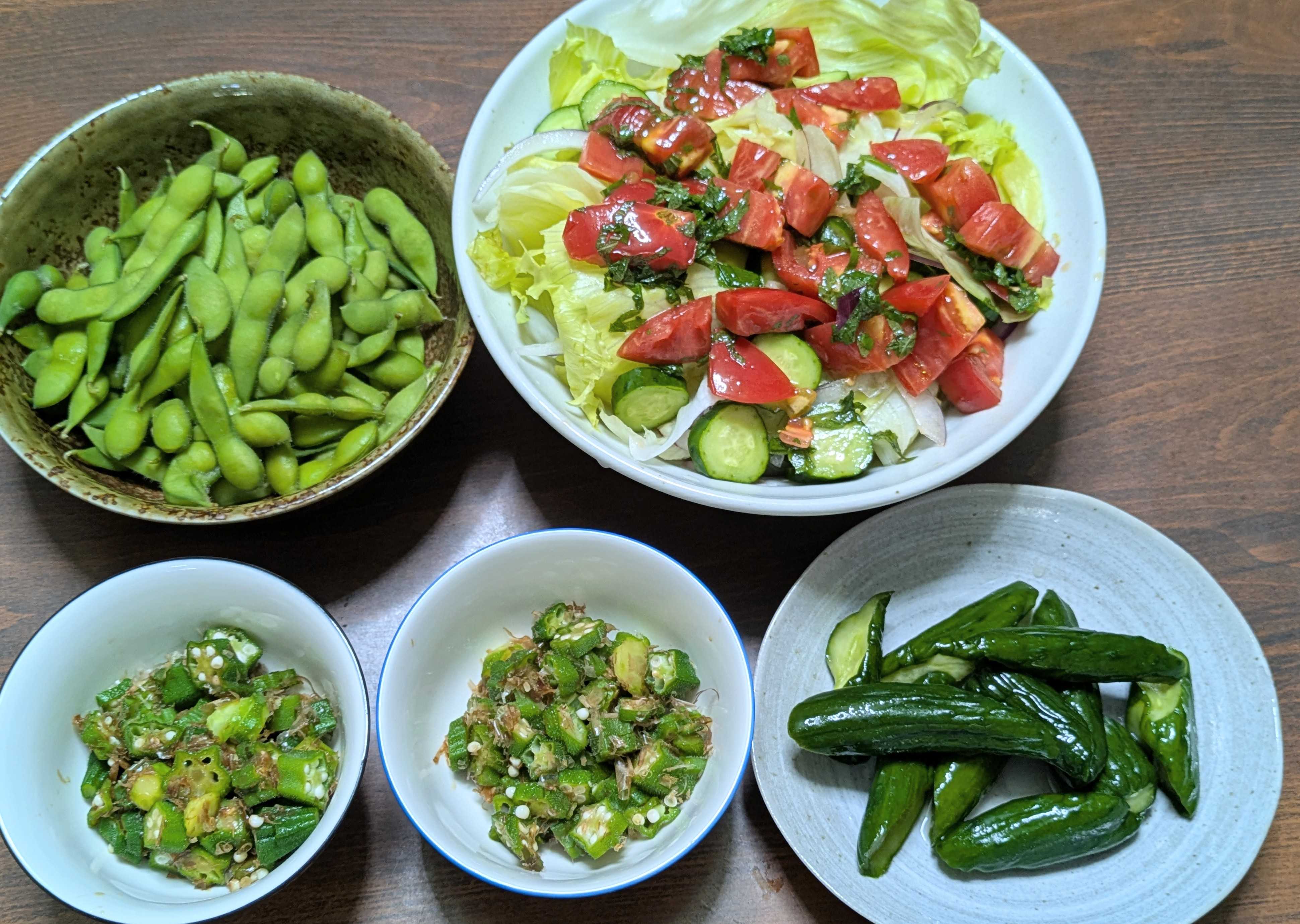 レタス、キュウリ、紫玉ねぎ、トマト、大葉と