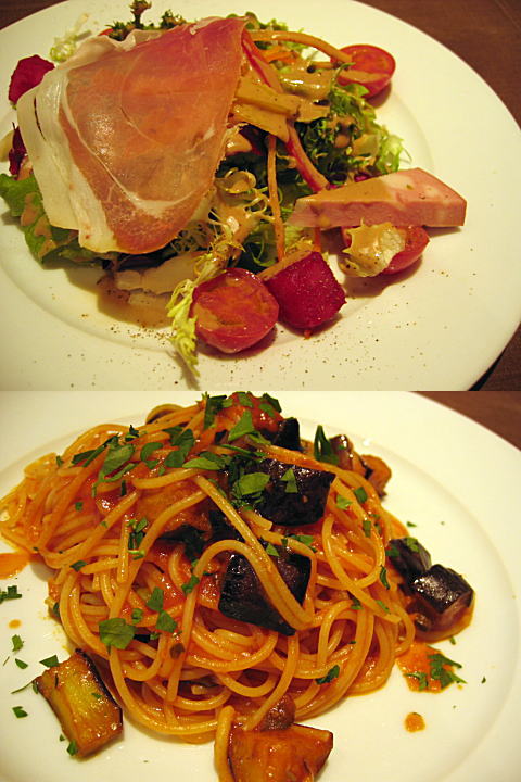 私を含めた4名の全員がAランチ(1,200円)を注文。メーンのパスタは私以外は『ベーコンとマッシュルームのラグーソース和えペンネ』、私は何となくロングパスタが食べたかったので、『アンチョヴィ・オリーヴ・ケッパーと揚げナスのトマトソーススパゲッティ』を選びました。
