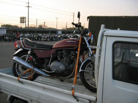 私は横目もつかずにBASの事務所に入り、陸送代金の支払いを済ませ、バイクを受け取りました。暫く車両を預かっていただいた名古屋知人から「古いわりには奇麗だよ」と聞いてはいたのですが、やはり1978年式、かなりくたびれていました^^;