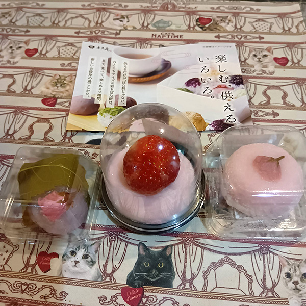 先日のお祭りの日はケーキじゃなくて和菓子にしてみたのだ~3種類買ってみた道明寺~サイズがめっちゃ小さくて食べやすいんだけどその分桜の葉が大きくかんじて ちょっとしょっぱかった(笑)中はこしあん~あまおう大福中はあんことクリームだったよ小さめなのでそんなに重くなかった♪最後は桜大福~桜あんが入ってました一番好きだったかも~たまには和菓子もいいね♪そういえば中トロでもう一品作ってました中トロとキュウリとたくあんと玉子焼きいれた中巻き~これもいい感じだったよ♪旦那が帰ってきてちょっと小腹すいてるって時に出してあげた(笑)