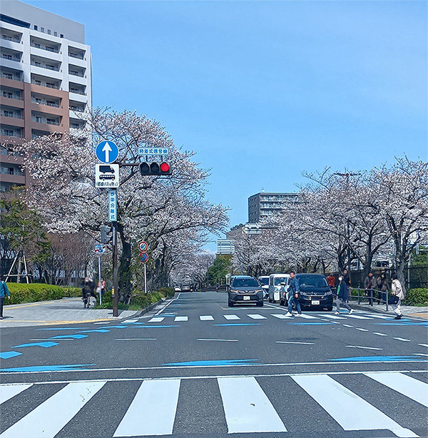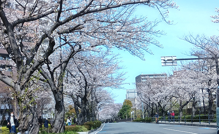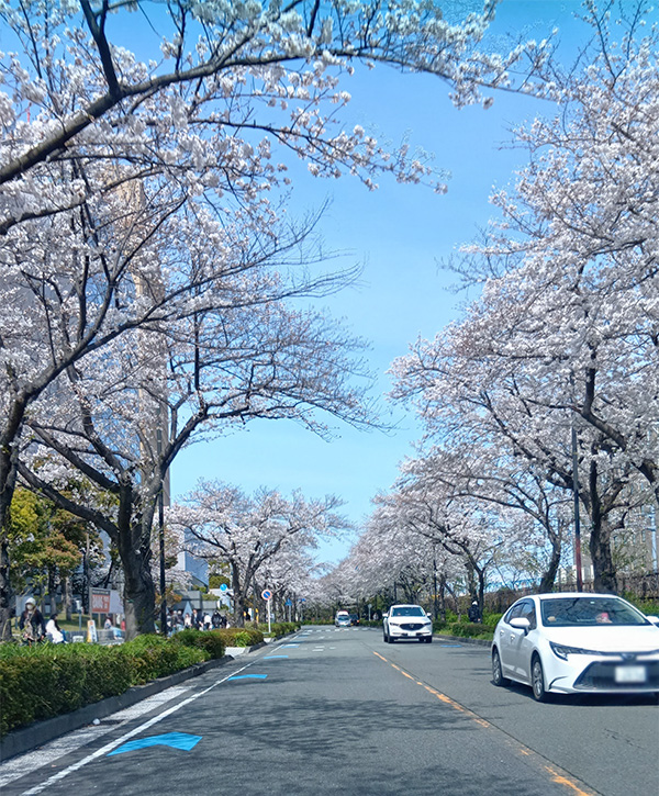 そういえば先週まだ5分咲きぐらいだったラゾーナの近くの桜いっぱい咲いてる道