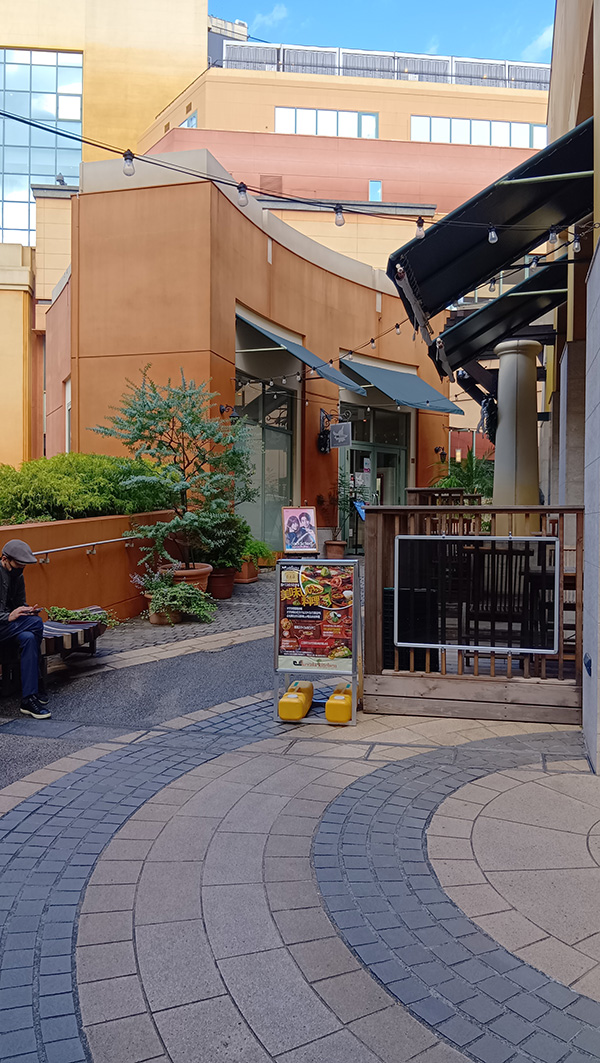 改札の外から左側に今はクリスピークリームドーナツができてて、それの左奥側にある感じだよ~