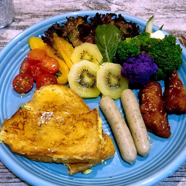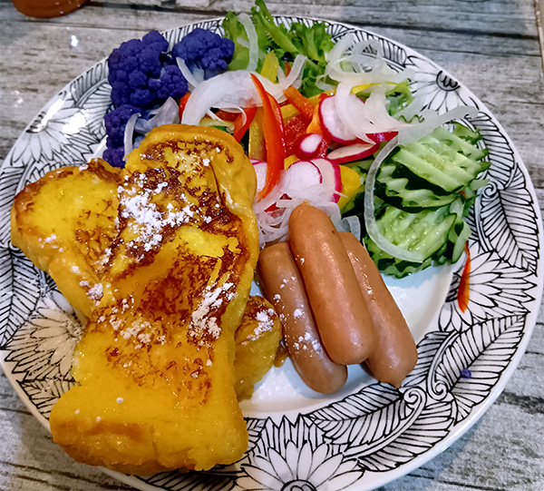 普段低糖質にしてるんだけど旦那がパスタ食べるときにパンが欲しいってパン買ってくるのよんで、先日晩ごはんをパスタにしたよって言ったらじゃあパン買ってくるって ダブルソフトを買ってきた6枚入ってんじゃん? 分厚い奴が(笑)そして1枚しか食べない(;'∀')あと5枚どうする?次の日もパスタにした<=前日がナポリタンで 次の日はガーリックトマト(笑)ちなみにニンニクも買ってきたのでそれをたっぷり使って作りました写真なくてすまんです(o*。_。)oペコッんでパンはまた1枚しか消費しない4枚残っているどうする?賞味期限が迫る(笑)フレンチトーストにして食べよう(笑)ってことで前日に仕込むお家でモーニングってことにしてママリンとフレンチトーストモーニングだ~一番でっかいさらにめいっぱい盛り付けた(笑)デニーズのモーニングよりゴージャスだろ(* >ω<)=3 プー一人1枚食べたので 残り2枚旦那の晩ごはんは ご飯になったのでパンは減らない。。。また仕込んだ(笑)ってことで次の日もママリンと私のモーニングはこちらサラダがちょっと変わったぐらい(笑)トウモロコシゆでておいたので それをそぎ切りしてサラダに~ブロッコリースプラウトとかプチトマト、レタス、キュウリ、アボカドが入ってるよ♪一瞬またデニーズでモーニング食べに行く?って話も出てたんだけどパン消費のために お家でモーニングしましたw朝からお腹いっぱいです(* >ω<)=3 プー