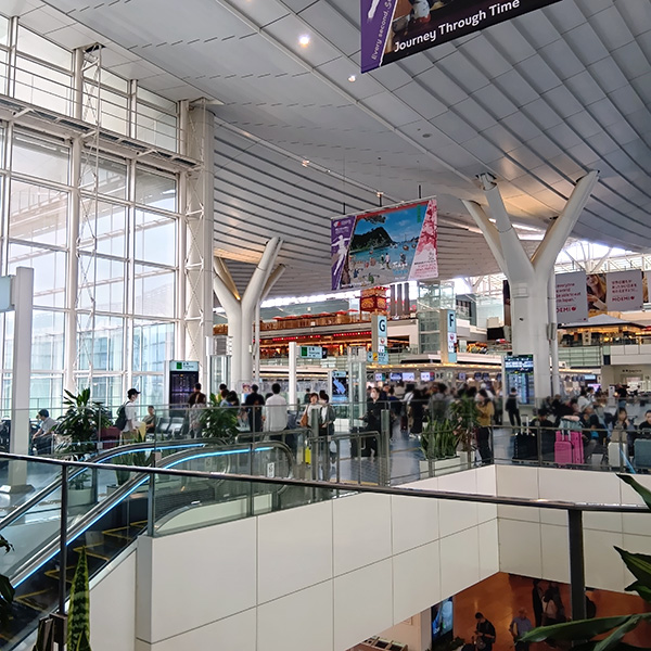 羽田空港へ遊びに行きあちこちうろちょろして~到着ロビーまで戻ってきましたでは3Fの出発ロビーへ~左上の赤いところが 江戸っぽいところ~秋だから紅葉があちこちに伊藤園ってかいてあったお茶できそうだね♪もうちょっと進むと~お土産屋さんっぽいところがあったりご飯屋さんっぽいところもありました値段見てビビったけど💦 どこもかしこも高すぎ~~~お寿司屋さんのメニュー↓これもインバウンド向けかしら?円安だし 外国人観光客にしたら安く感じるかもね~そのなかで行列出来てたのはこちらここがリーズナブルなんだろうねw1000円から2000円ぐらいのお値段だったかな?でもこんなのもあったよ↓とりあえずごはんは食べたから<=海ほたるでw上に行くぞ~ドンキもあったwようやく到着~展望デッキだよ♪飛行機~♪マスクはしてたんだけど ちょうど着陸した飛行機が逆噴射してるところですごい音と匂いがした~旦那が出張行ったときに なんとなく羽田のライブカメラを見てたんだけどやっぱライブ感が違うねw飛行機見た後はさっきのところへ戻り~あの橋見てみたいってことで~はねだ日本橋だってw結構おっきい~橋の下には人が休憩する場所がありましたちょっとしたベンチっぽいところ~日本風に 赤い布かけたお茶屋さんのベンチっぽいやつね橋わたると 絵馬を飾るところとかあったよこの絵馬は自販機で売ってましたwとりあえずこのベンチっぽいところで休憩~旦那が買ってきたのは~モスバーガーででっかいドリンクだwオレンジ丸ごと1個入ってたよ~私はミルクティにして 旦那は抹茶をwママリンがノンカフェインを選んだから おそらく旦那は一番飲みたくない抹茶になった(* >ω<)=3 プーまさかこんなにでかいサイズだとは思わなくてびっくりしたみたいモスはこんな感じだよ本当はこの後羽田限定のお土産でも買ってこようかと思ったのに第3ターミナルだとさっきの江戸っぽいところとホテルの方へ行く道にあるお店がメインで下の方には何もなかった~疲れちゃったので また行く気力もなく帰ってきちゃいましたアハハヾ(≧∀≦*)ノ〃急遽羽田空港まで行ったので 下調べ全然してなくて~ママリンも疲れちゃったから お家に帰りました1日で海と空と両方見学して 楽しかったけど疲れた1日でしたw