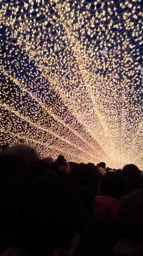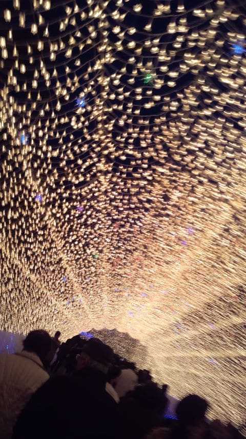 紅葉になり雪が舞う約5分で移り変わりを堪能しすし詰めをぐいぐい通り抜けたら少し上のほうから見る場所があり通り抜けたら宝石箱。きらきらしてた(*^。^*)