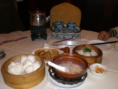 中国に結構来ているけど、飲茶は初めて。いつも夜しか中華は食べていないので。こんな感じ。後これに1品ありました。平日に振り替えて休みを取って(言い訳?)、初めて食べました。デザートは失敗(甘いけど全部暖かい)しましたが、デザート入れても3千円しませんでした。いつも中華を食べるとヘビーなので、軽くてよかったかな?デザートだけは要注意!