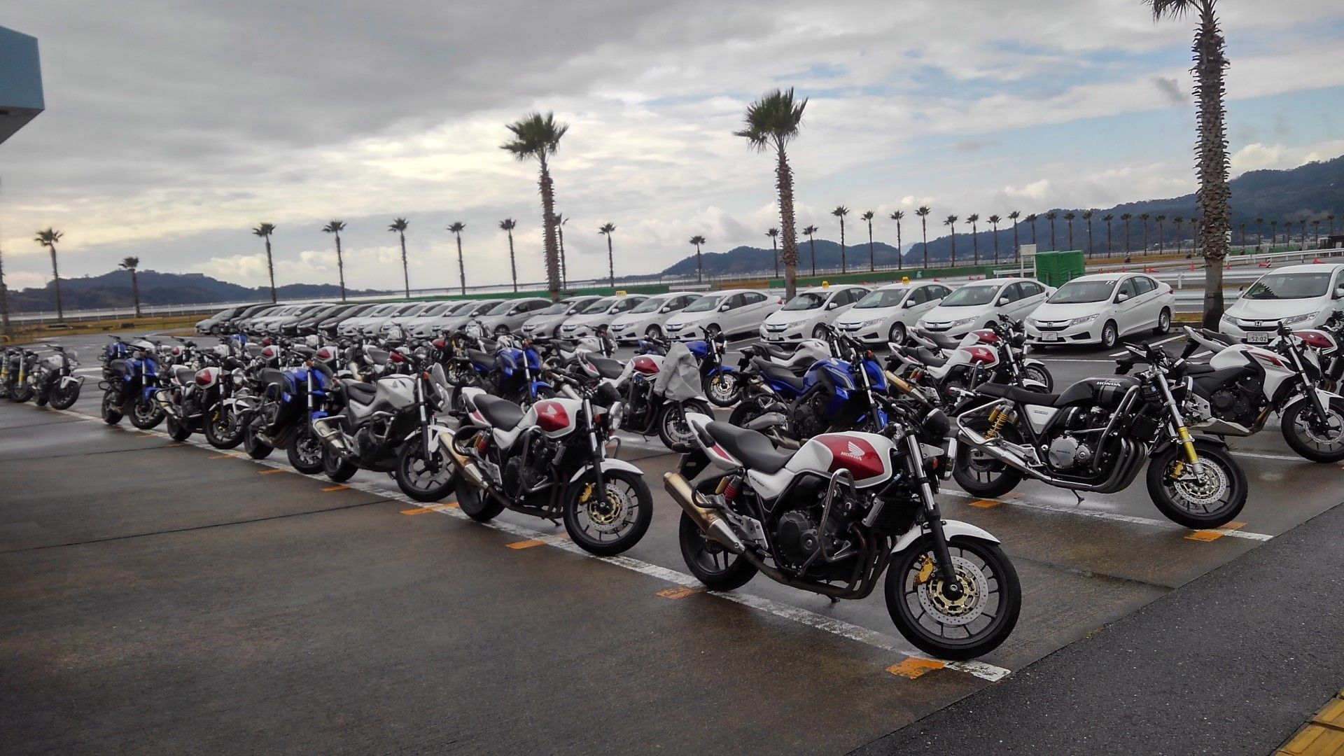午前中は雨、午後も路面は乾ききらない状態でした。 そんな中、1300CCに乗りました。 雨の日の1300は、本当に久しぶりです。 イントラメインはO島さん、サブはK村さん。 K村さんはトラ車2台持ちらしい。 朝一はタイヤを温めるためもあって、ブレーキング+オフセット。 朝二はストパイ+オフパイ。 長めの距離だけど間隔はあまり広くないオフセットで、Uターンに近い切り返しです。 ターンした後、しっかり出口に向けてからアクセル開けださないと滑ります。 午後からはコーススラです。 雨は止みましたが、水たまり多数です。 アクセル開けながら立ち上がろうとすると、てきめんに滑ります。 O島さんは、オフの経験があれば滑っても対処できるでしょ、と軽い感じです。 確かに昔ほどビビらなくはなったけど、1300の重量感ハンパないので、そっちにビビっていました。 最後は細かい系のオフセット。 最後までビビったままでした。 たぶん55kmくらいかな。 次回は26日にオフ中です。
