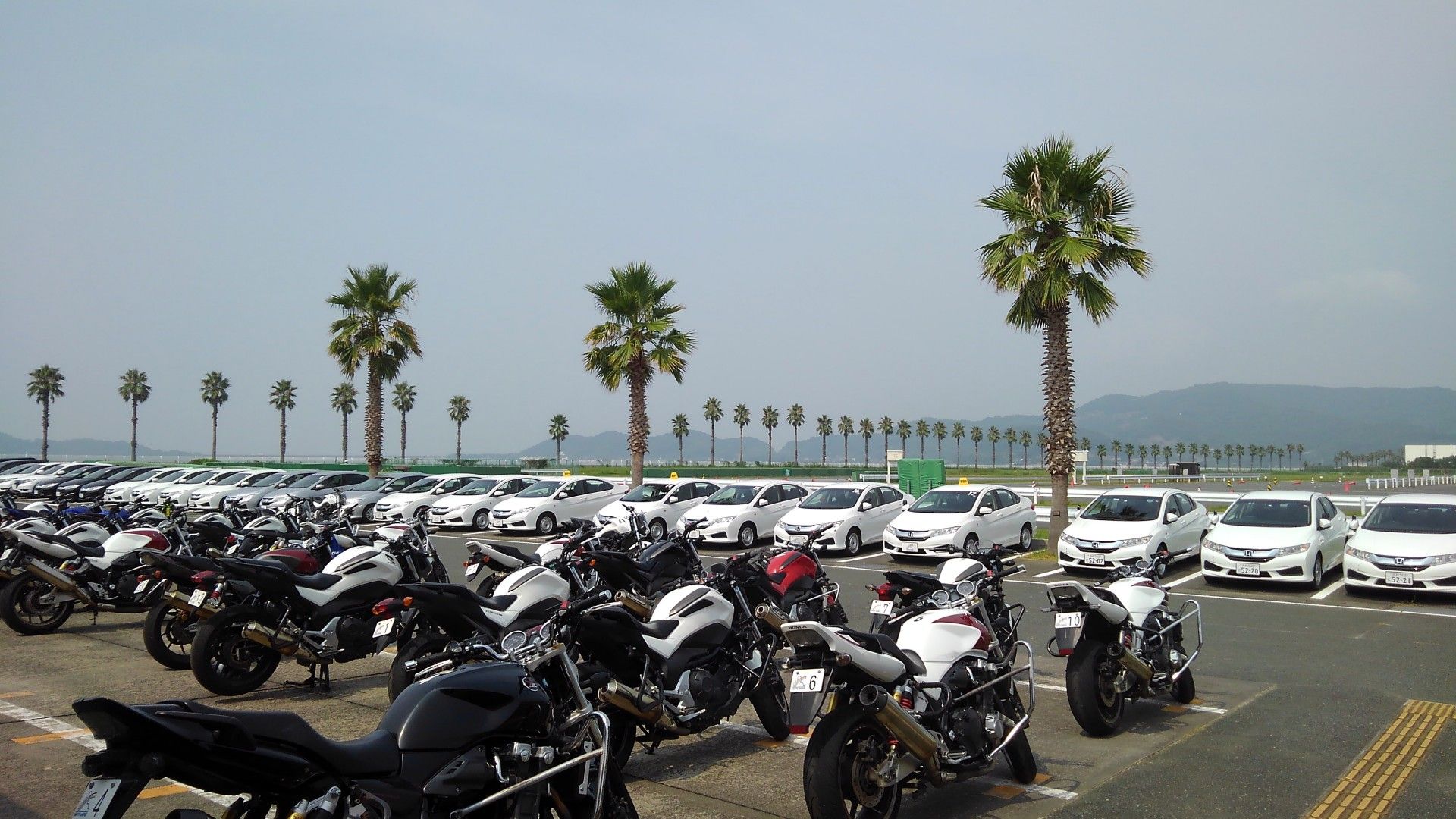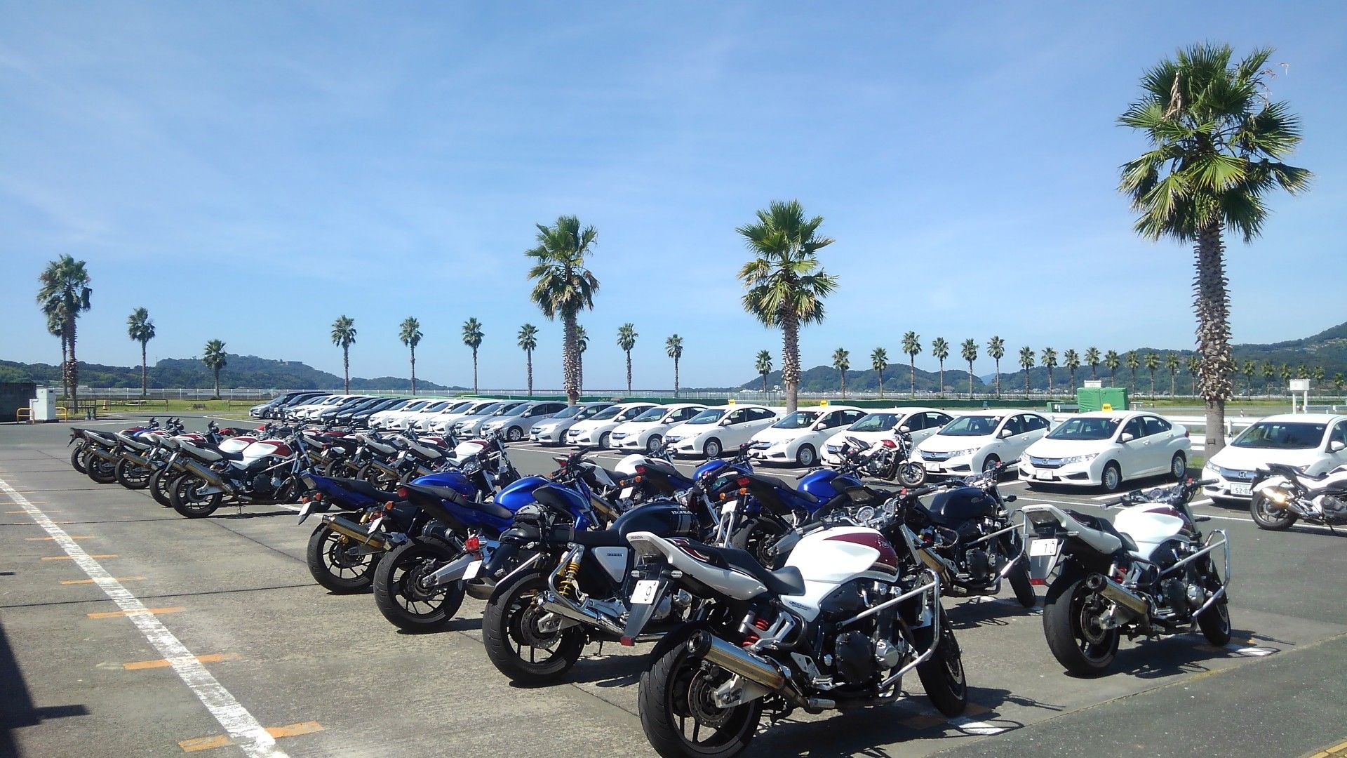 骨折後、初の1300CCです。 参加者は15名。 天気は良いけど、湿度が高い(空が白んで見えます)。 イントラさんはK村さんとI泉さん(前回K泉さんと間違えて書いてしまいました)。 最初は2ndでアクセル・ブレーキなし。 後輪を倒すことでセルフステアを感じる練習。 次はいい位置に乗る練習。 やはり2ndでいいポジションに乗るとフロントサスが安定するので、その場所を探す練習。 午後からはブレーキ・アクセルを使いながら、先にいいポジション(若干内荷重)に乗ると、クルッとターンできるようになるので、それを感じる練習。 午後二はマーカーをフロントタイヤは外、リアタイヤは内を通したり、リアタイヤで踏んだりと、コントロールする練習。 これはコーナーでクリッピングポイントでリアタイヤを一番寄せる位置に持ってこれるかの練習ととらえるとうまくいく。 最後はまとめということで、好きに8の字の練習+コーススラ(連続はダメとのこと)。 コーススラを数周走りましたが、慣れていない方が逆走していたのには驚きましたが、慣れるまでは2周くらいでは覚えられないから仕方ないですね。 55kmほど走りました。 1300CCも晴れているとグリップもよく、楽しかったです。 次は12日に1300で中上級です。