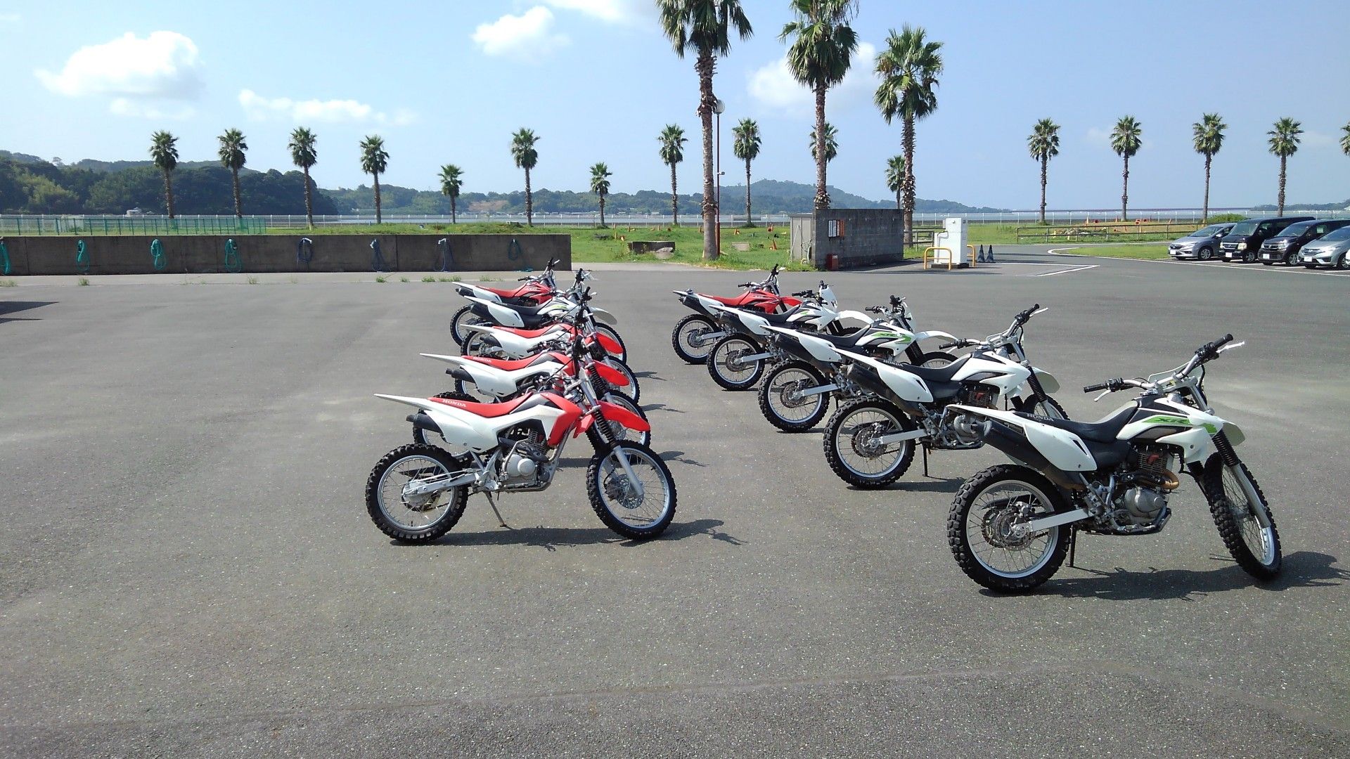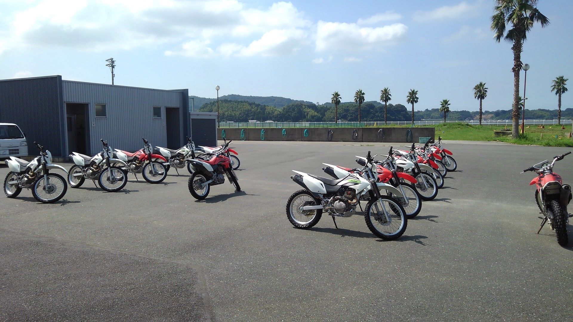 まだまだ暑い中、参加してきました。 夏場なのに中級は満員御礼の10名、対して初級は1名でN村さんとマンツーマンという豪華さ。 オフ初級なのにオフバラ初級となっていましたが、なんでもありですね。 中級はT名網イントラでした。 基本メニューで進みます。 今日は転倒しないつもりでしたが、ヤシ周りの逆バンクで1回と、コースの砂にやられました。 晴れた日にコースを走るのは初めてでしたが、フロントタイヤがとられる取られる。 今考えると雨の轍と一緒で、思いっきり後輪荷重で走ればよかったと思うのだけど、走っているときは前輪に荷重をかけていたので、大変しんどかったです。 T名網に聞いても後輪荷重と言っていたけど、ビビッてダメでした。 次はうまくやろう。