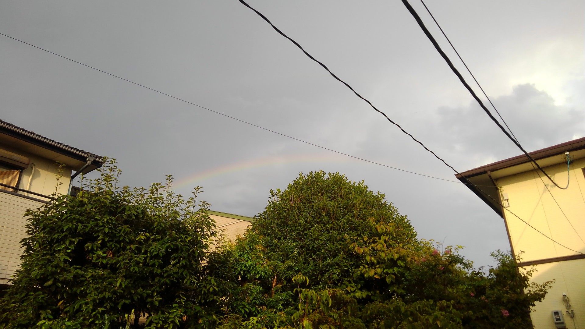天気予報がコロコロと変わり、結局今日は1時的に雨が降るだけに変わったが、竜巻警報が出たりしながら、1時間ほど強い雨が降った。 今も少し降っていますが、虹がかかっていました。 明日は回復するかな。