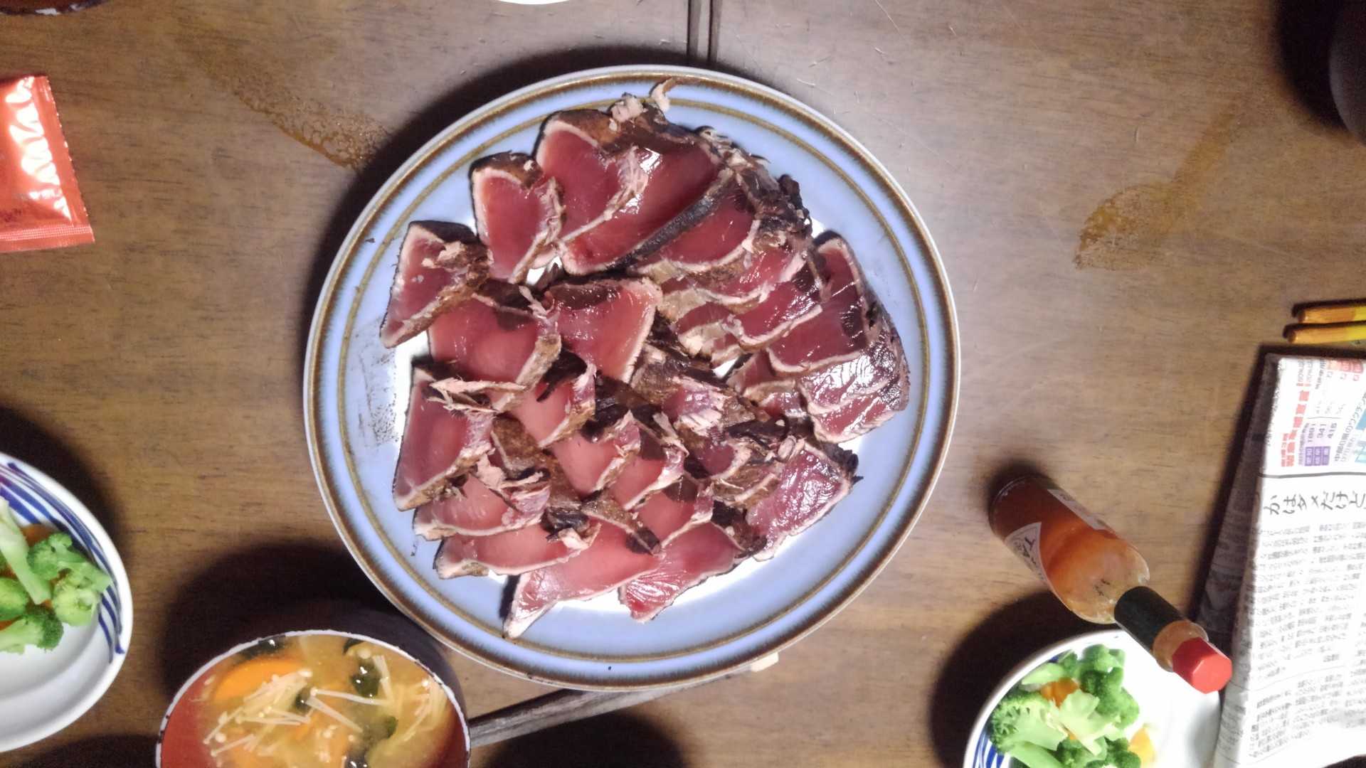 高知県黒潮町のカツオのタタキが届きました。 という事で、カツオのタタキパーティということで、ガッツリ食べました。 藁焼きの風味がしっかりあるので、一緒に送られてきた塩で食べるとおいしかったです。 もちろん、ポン酢でもOKです。 次は鰻です。