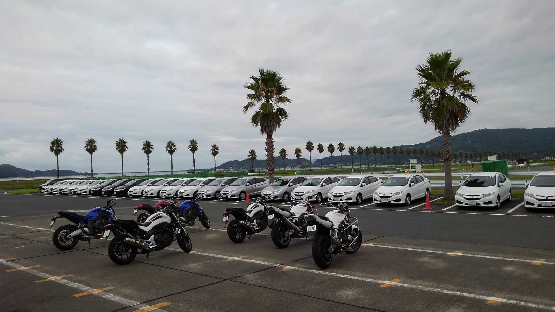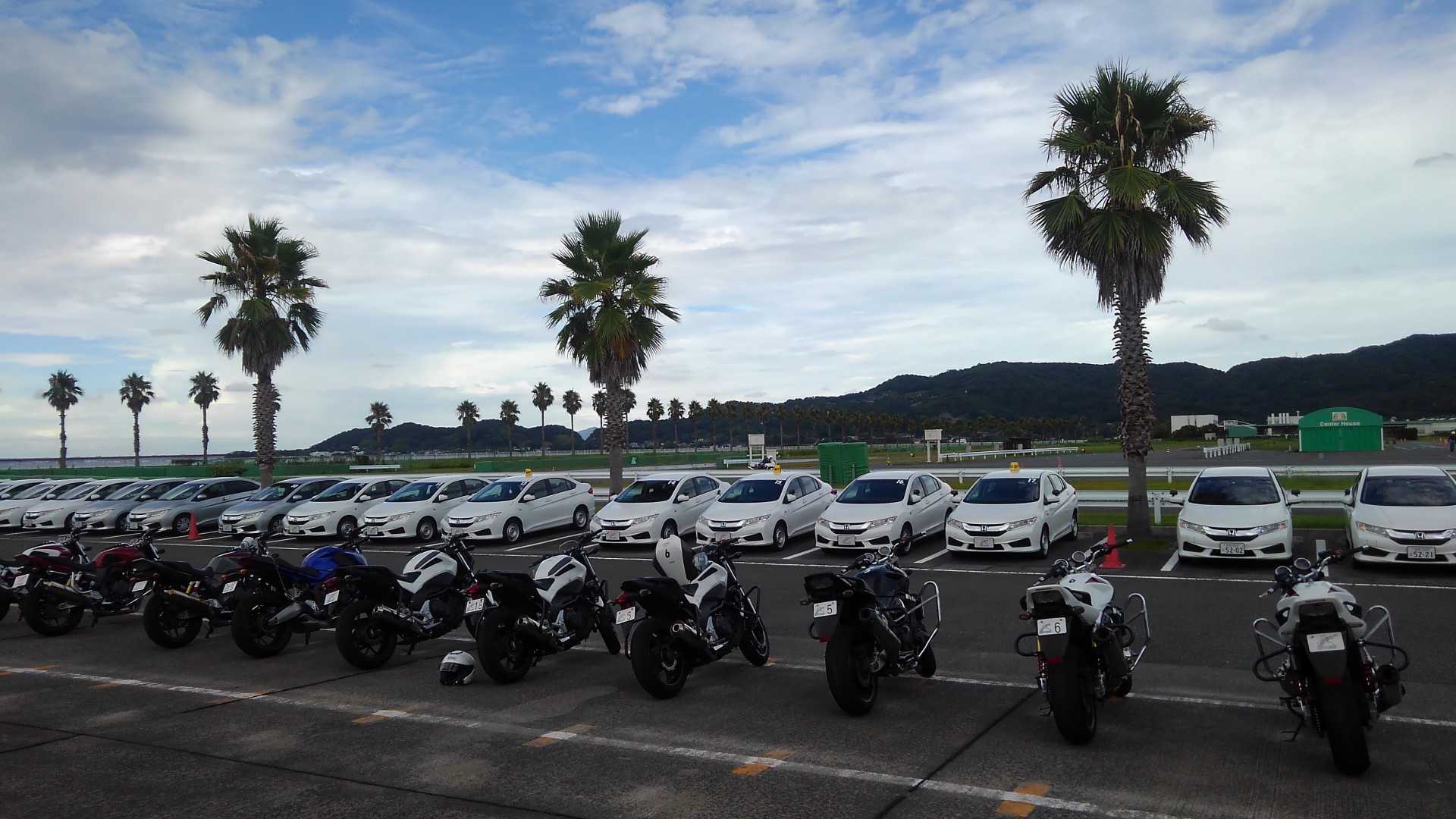 台風9号の影響で東海地方は雨風が強い1日でしたが、湖畔は思ったより雨が降っておらず、路面は上々でした。 でも、雨の降り方はよくわからなかったのとあばらがまだ少し痛むので、バイクは125に変更させていただきました。 イントラはI泉さん。 参加者は5名です。 中級という事で、最初はオンで姿勢の確認をした後はブレーキターンの練習から始めました。 最初は8の字エリアでリアを滑らせて、四角く曲がる練習をしました。 その後、90度ターンを入れたオフセットでリアを流して、アクセルをつなぐ練習をします。 そしてフラットのオフセットエリアで後輪を流しながら繋いでいきます。 午後からはヤシの下でのオフセット、最後はコーススラと腹満腹になり、最終の時間は各自好きな練習をしてよいということで、フラットエリアで後輪を流して走りました。 ターンをする前にあらかじめ腰を次の進行方向へ向けておくと、必要以上に後輪は流れず行きたい方向へバイクが向きます。 但し、125では基本2ndで走っているのですが、流石にクラッチをつないで加速をしたくても回転が上がるまでは時間がかかり、ブレーキターンをしない方が早い感じです。 次回は木曜日に8の字だったかな。