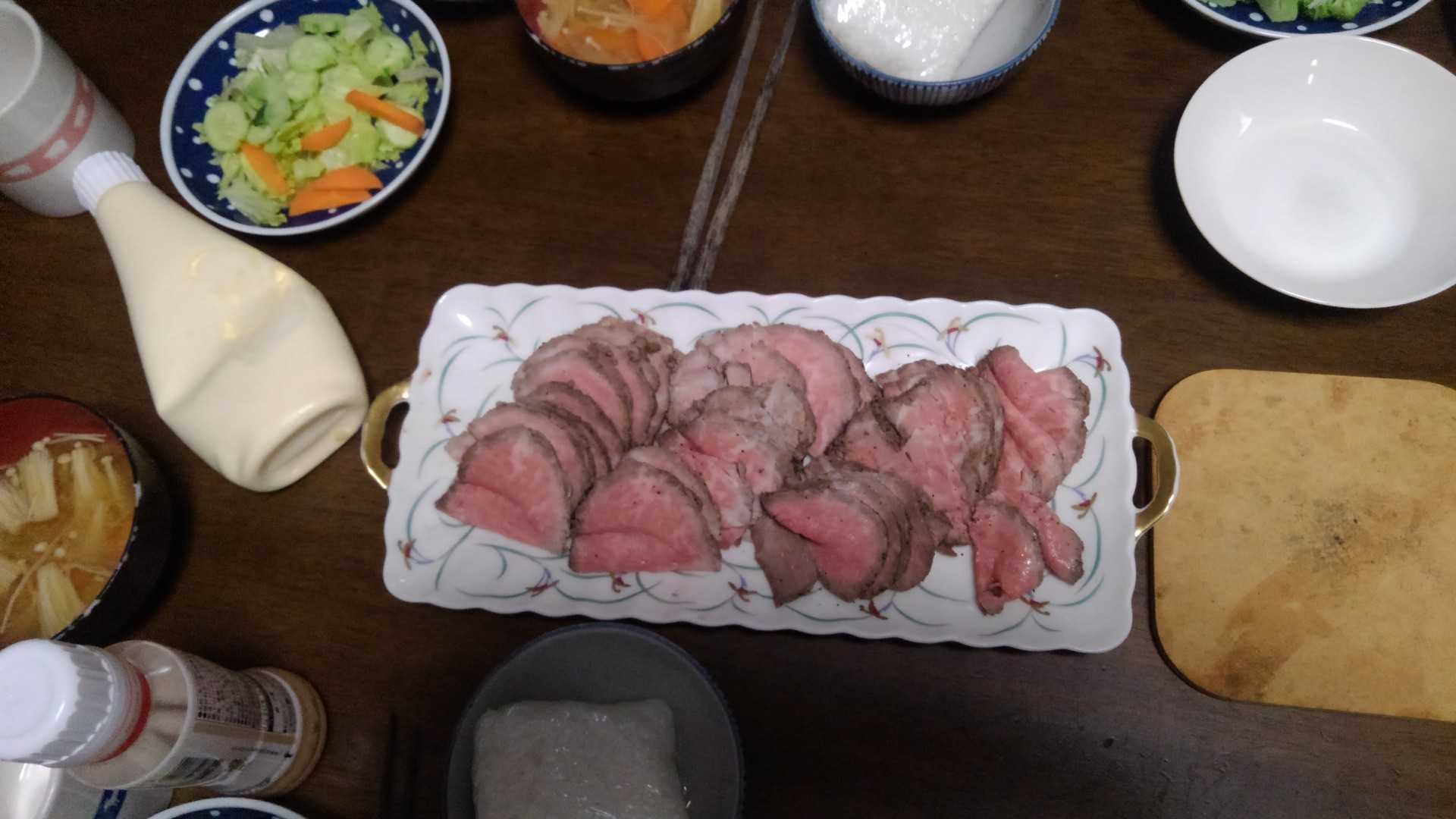 ふるさと納税で手配した岩手県矢巾町のローストビーフを食べました。 冷凍で来て、朝から冷蔵庫で解凍をして夕食に食べました。 ソースもついていて大変おいしかったです。 2万5千円で600g程度の量でした。 写真は半分の量です。 次はカツオのタタキ待ちです。