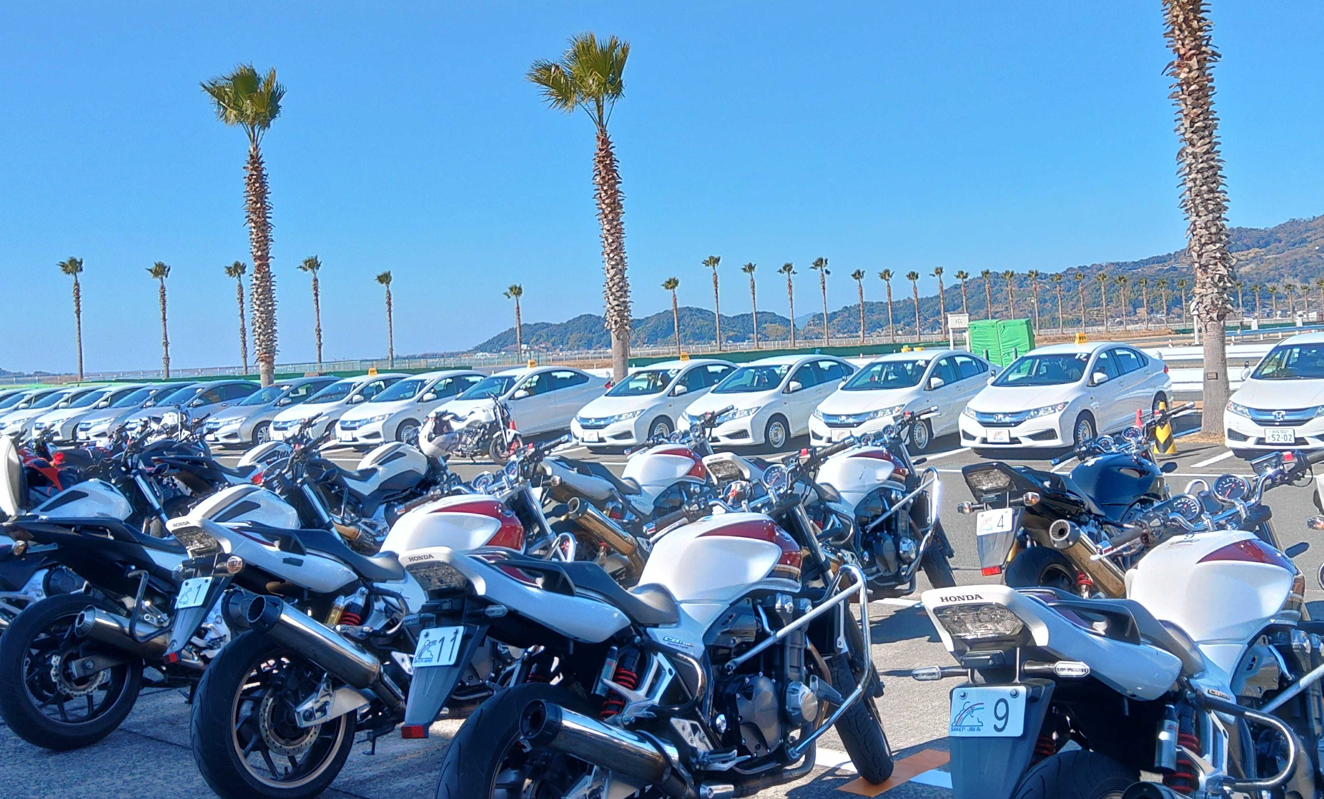 いい天気で暖かい空気だったのですが、海風が冷たい1日でした。イントラはI泉さんよW田さん。バイクは1300,参加者は17名くらいでした。朝はアクセルを開ける練習。大きめのオフセットで普段より更にアクセルを開けてみる。1300で2年前に後輪を滑らしてハイサイドを喰らい、転倒骨折を経験した自分はビビります。実際パイロンを回った後、少し多めに開けるとズルッときます。ピリッと来ないまま1日走って、最後に前後輪の内輪差を意識して走ってようやくリーンウイズ、若干INという姿勢になれた気がします。本日の走行は約60kmでした。次回は来週8の字です。