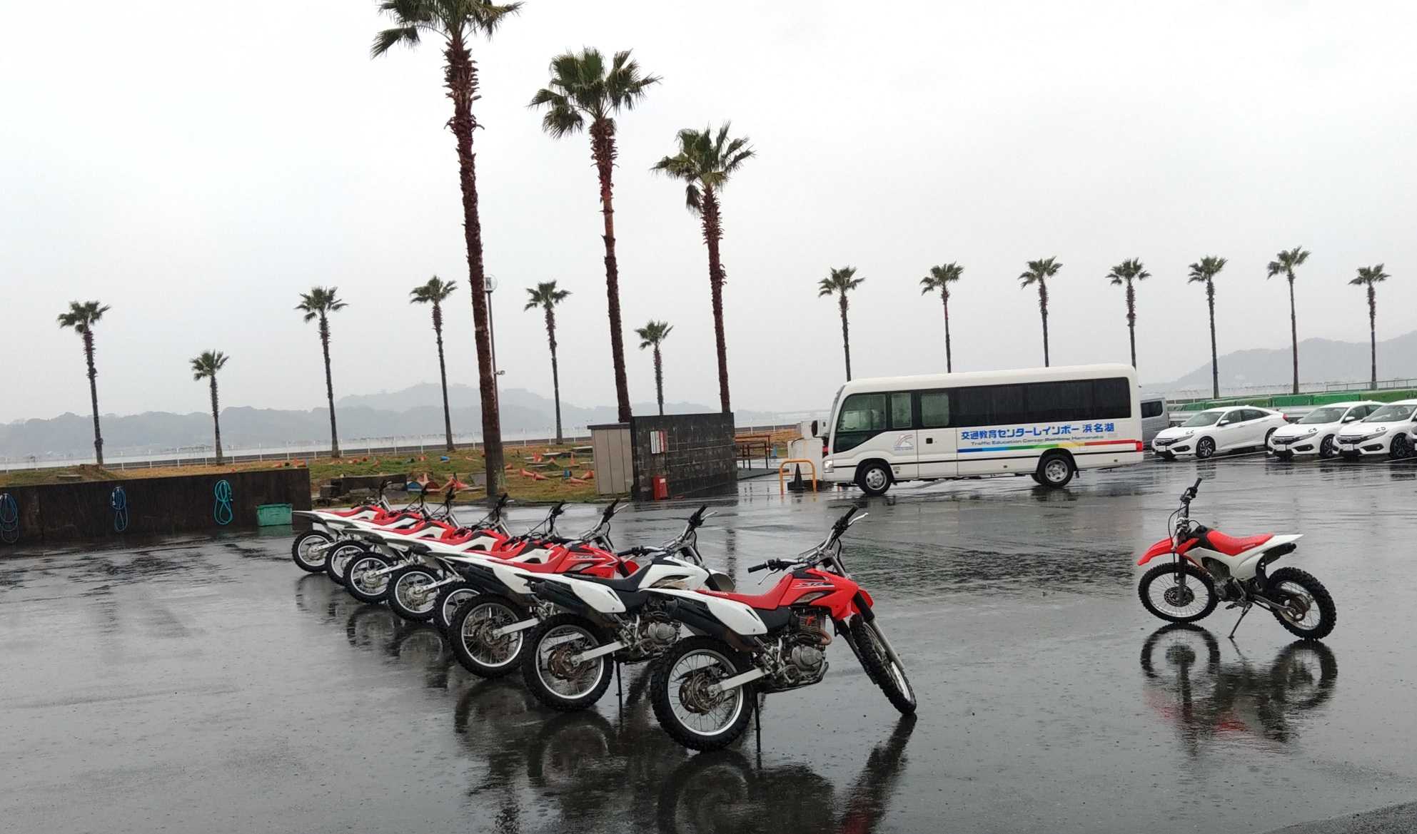 2カ月ぶりにオフ中に参加しました。天気は結構な雨。泥沼必須。バイクは今月で最後のXR230と思いましたが、この雨では前に進むとは思えず(実際今日初めて230に乗った方はコケまくっていました)、125です。イントラは何気にオフ走行が上手いI泉さんです。今日はわだちでハンドルを取られる事を意識してか、余りハンドルは切らずに(下半身で)バイクさせて走る練習を中心でした。転倒はなかったものの、コケたかどうかはわからないほどドロドロになりました。疲れました。