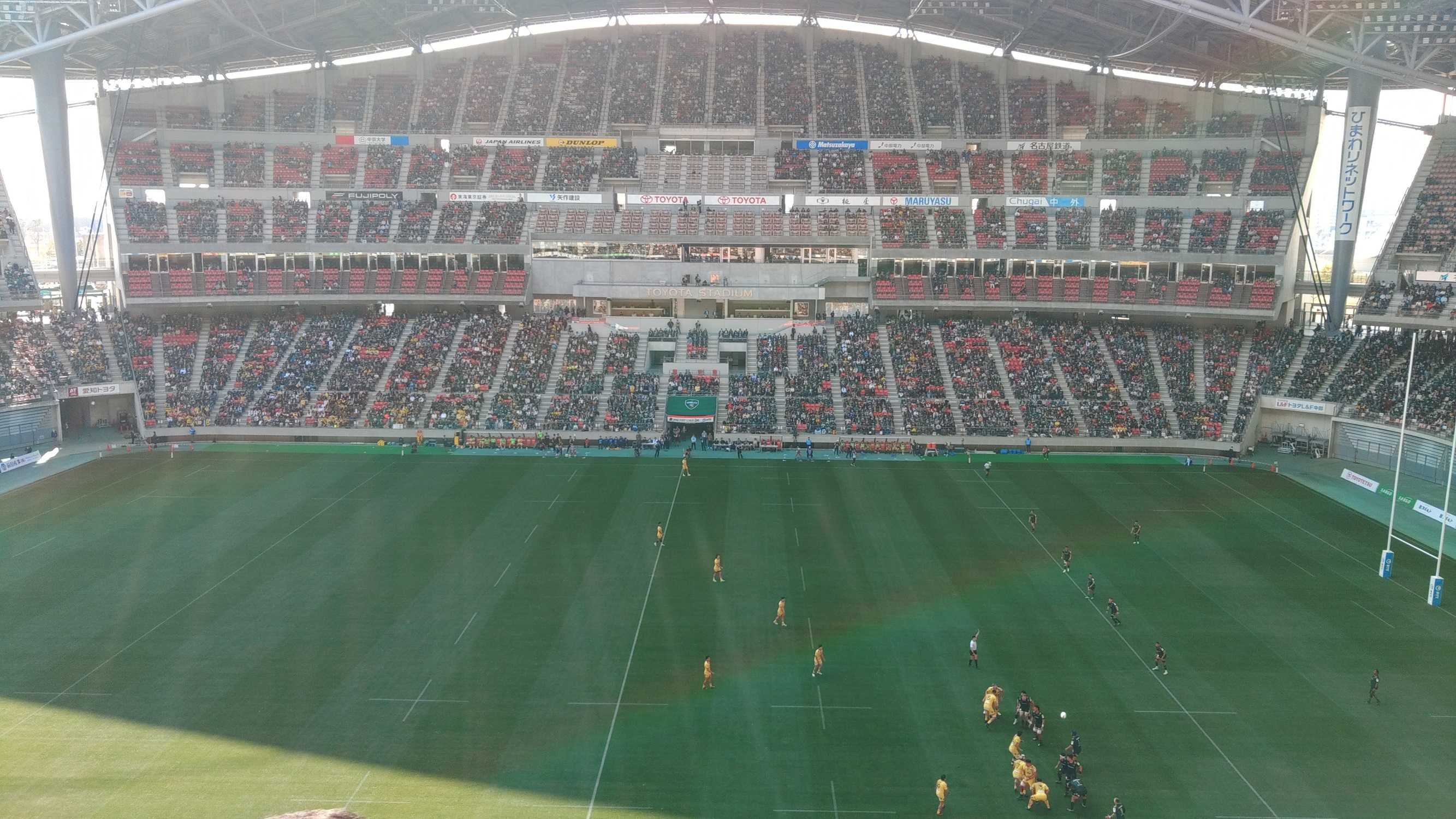 会社の関連でラグビー試合に動員があり、観戦をしてきました。さすがに車で行くとはまりそうなので、電車で最寄りの駅まで移動して、20分ほど歩いてスタジアムに到着しました。試合は残念ながら応援していたチームは最後のワンプレーで逆転されて終了しました。次は勝ってほしいですね。