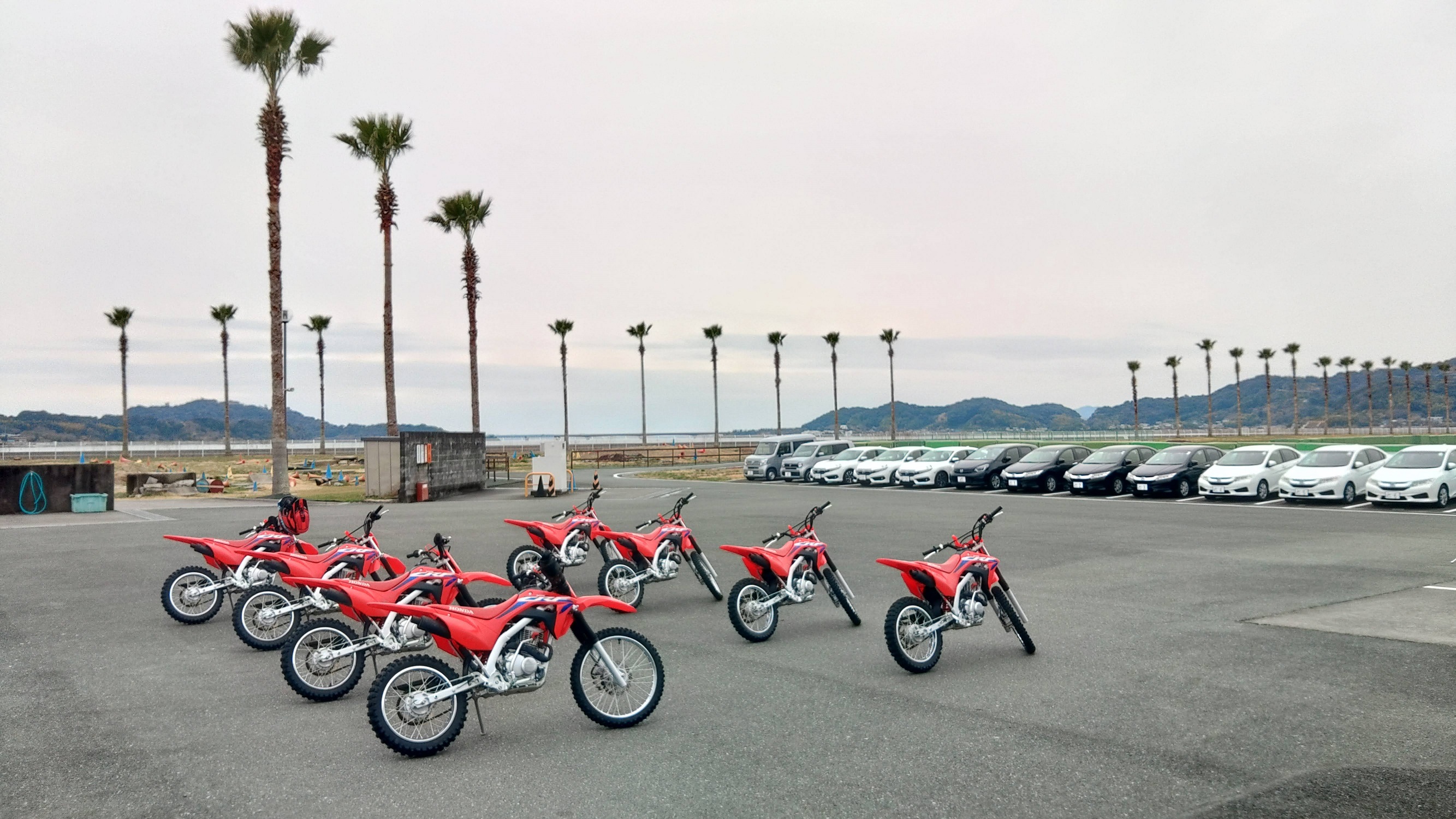 オフロードは5週ぶり、オン含めても4週間ぶりに参加です。天気は当初は昼間は曇りでしたが、昨日の夜からは午後から雨予報に変わっていたが、、実際午後から雨でした。参加者は8名、イントラはT名網さん。写真は朝なので、まだ曇りです。最初は8の字で各自身体の動かし方を思い出します。私もギクシャクしていたので、いい仕掛かりです。その後、フラットダートで走ります。ここでは、フラットといえどオフの路面は凸凹しているので、少し腰を浮かして走るとアクセルが明けやすいということを体感します。午後からは通常最初に練習するストパイ+オフセットをスタンディングで走ります。ここでは無理のない姿勢で立って走行することを意識します。どうやって走るかはスクールで体感してください。途中で雨が強くなってきたので、一旦戻ってカッパタイムをとります。その後、アップダウンの練習をして、最後はコーススラです。走っているうちに雨が強くなり、最終タームでは滑りやすくなってきたので、ターンの時にはアクセル一定でターンします。滑るので敢えてアクセルを開けて滑らせたくなりますが、じっと我慢です。今日は転倒なく練習できました。時間は来週オン中上級です。