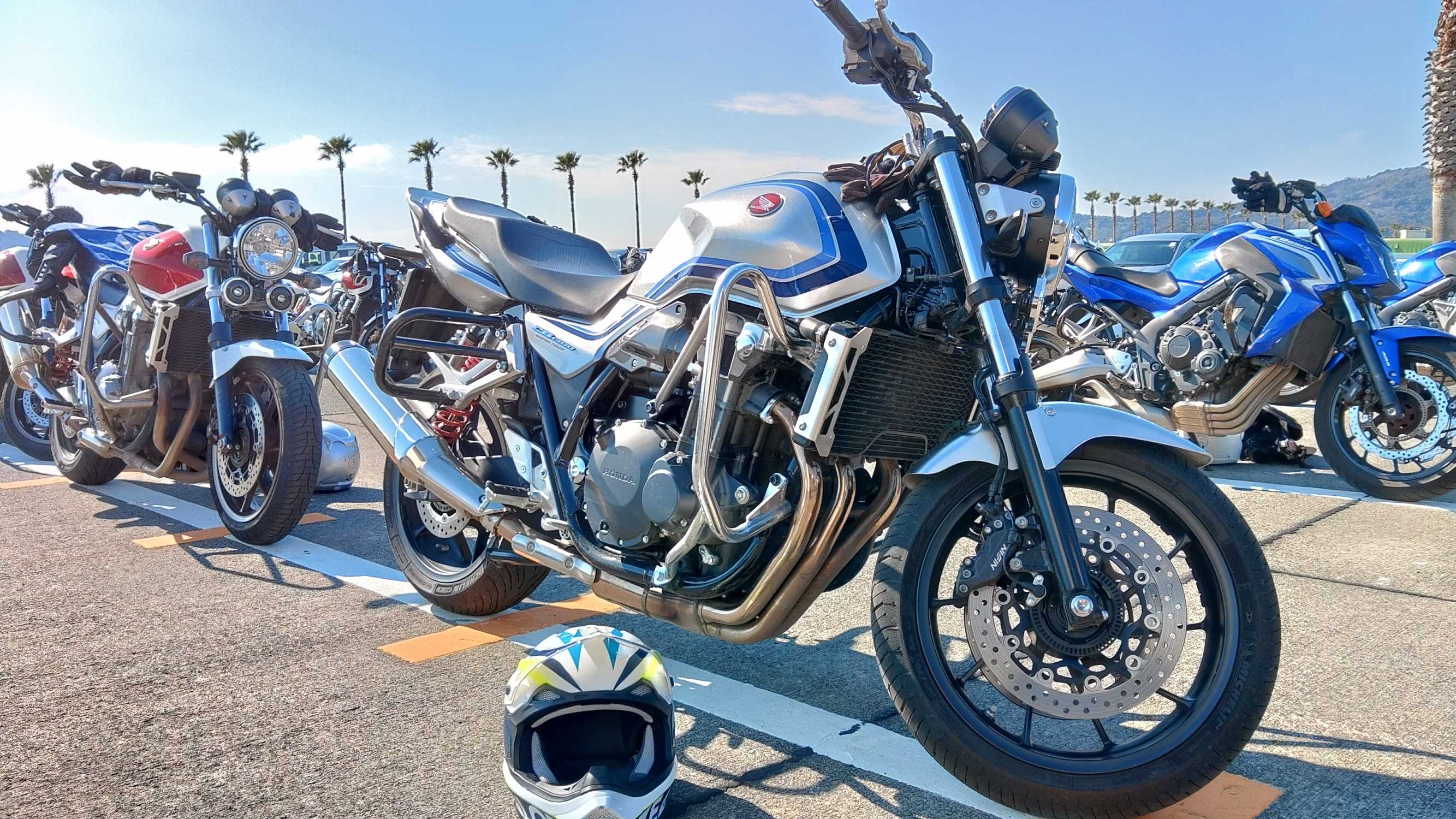 オンロードも2か月ぶりくらいの参加です。参加者は19名、天候は曇りのち小雨でした。イントラはT名網さんがメイン、K田さんがサブでした。バイクはシステムの予約では650CCはCB650しか選択できなかったのですが、希望の確認があり希望者はCB650RでもOKということで、お願いをしました。↑CB650Rです。後ろがCB650F。乗ってみると、新しいからだけではなく、フロントブレーキのフィーリングが良くなっている。CB650Fはオンオフみたいな感じで、効くは効くけど、効き具合を調整が難しかったのですが、650RはCB1300のように握る量で効き具合の調整ができる感じです。また、タイヤもバトラックスT31を履いていて雨のグリップもいい感じです。フロントフォークもいい仕事をしているのか、400Xと同じSHOWAのSFF-BP仕様が私にマッチしているのかな。今日は傾けて加速など練習を進めたかったようですが、小雨であまりガッツリ加速の練習はできませんでした。トラコンもついているのですが、荷重が抜けると滑りました。2回ほどズルッと来ましたが、それでアクセルを戻したので、そのまま走ることができました。トリップメーターのリセットがどうしてもできなかったのですが、56kmほど走行しました。次回は来週オフ中です。