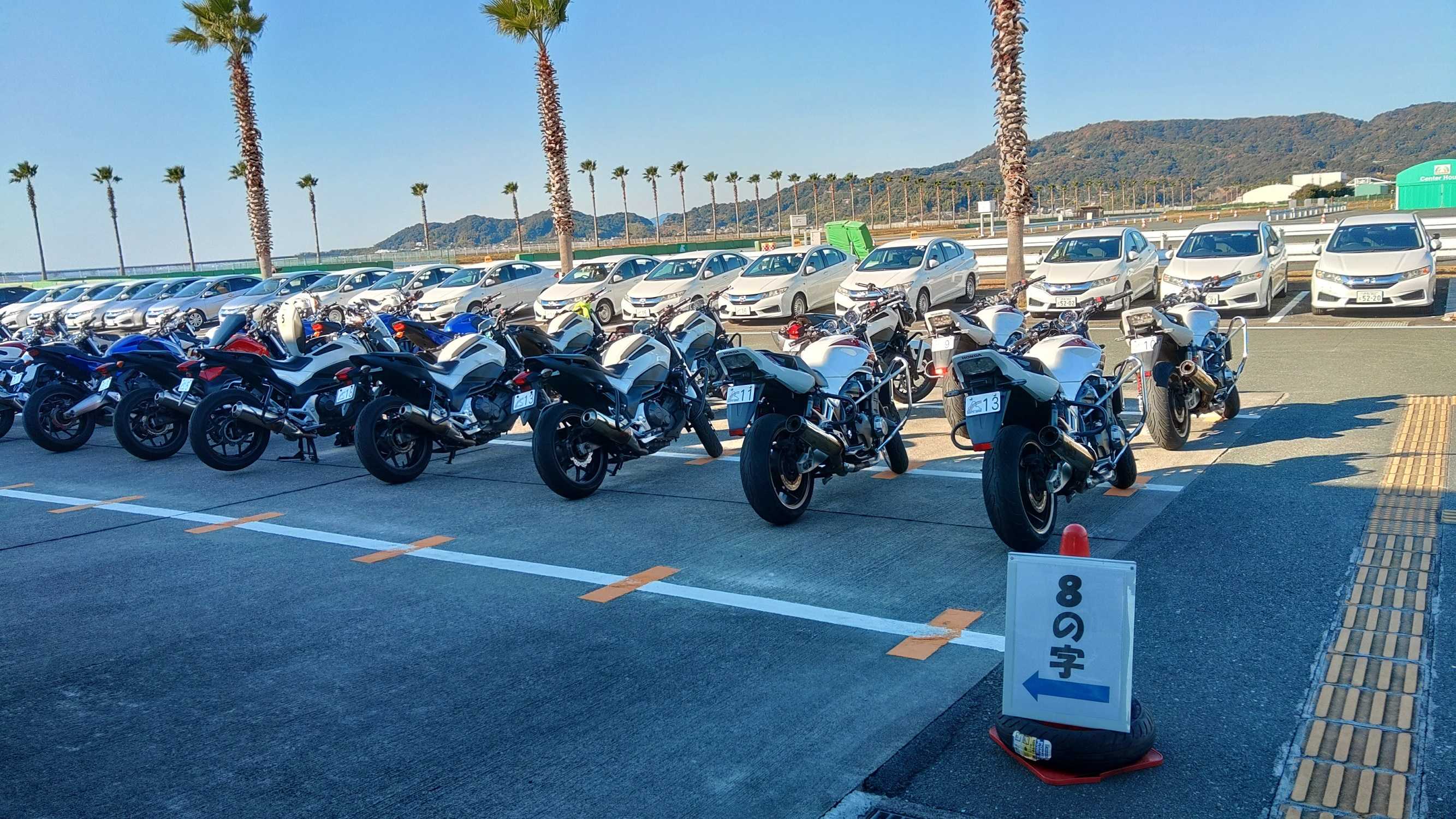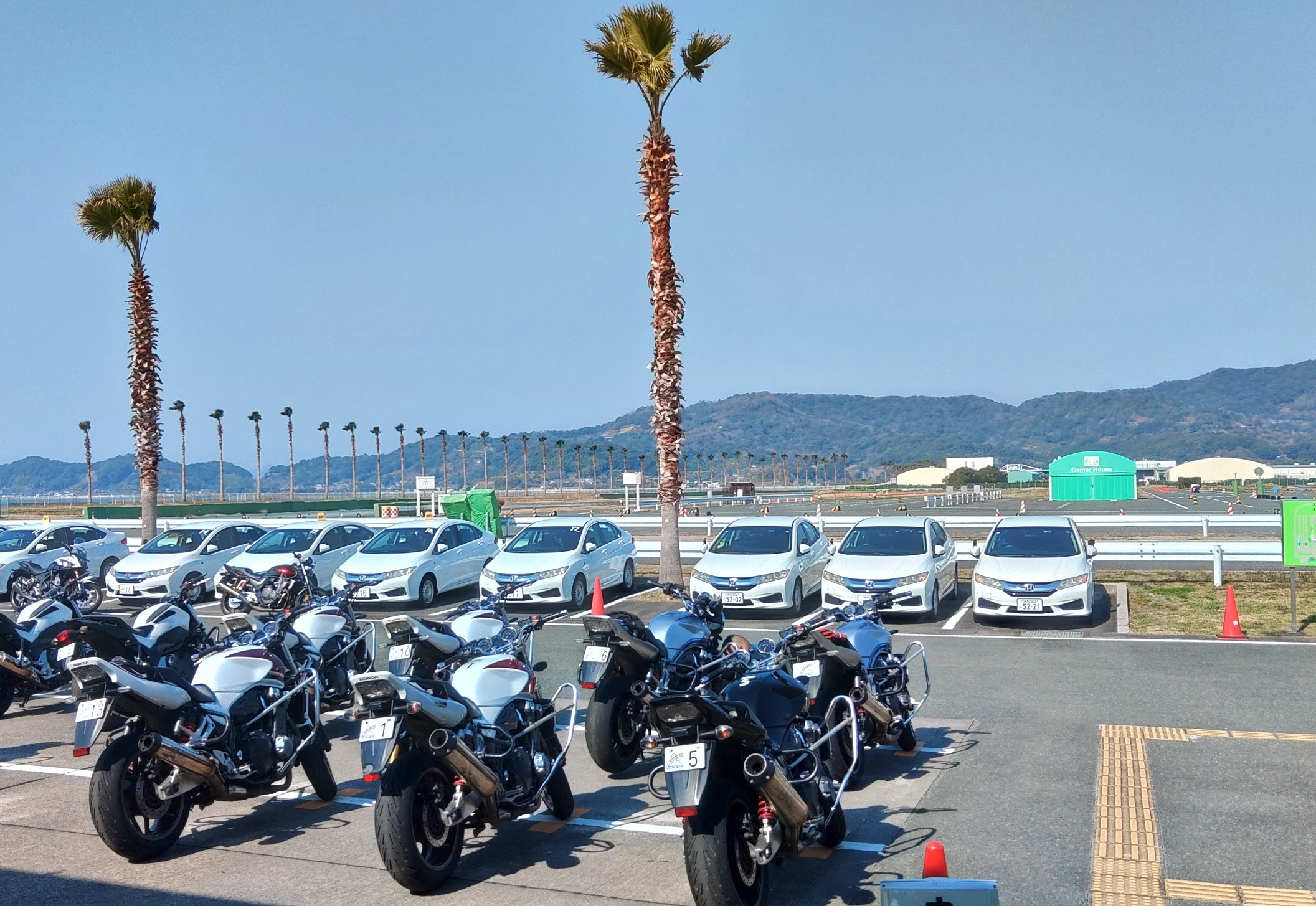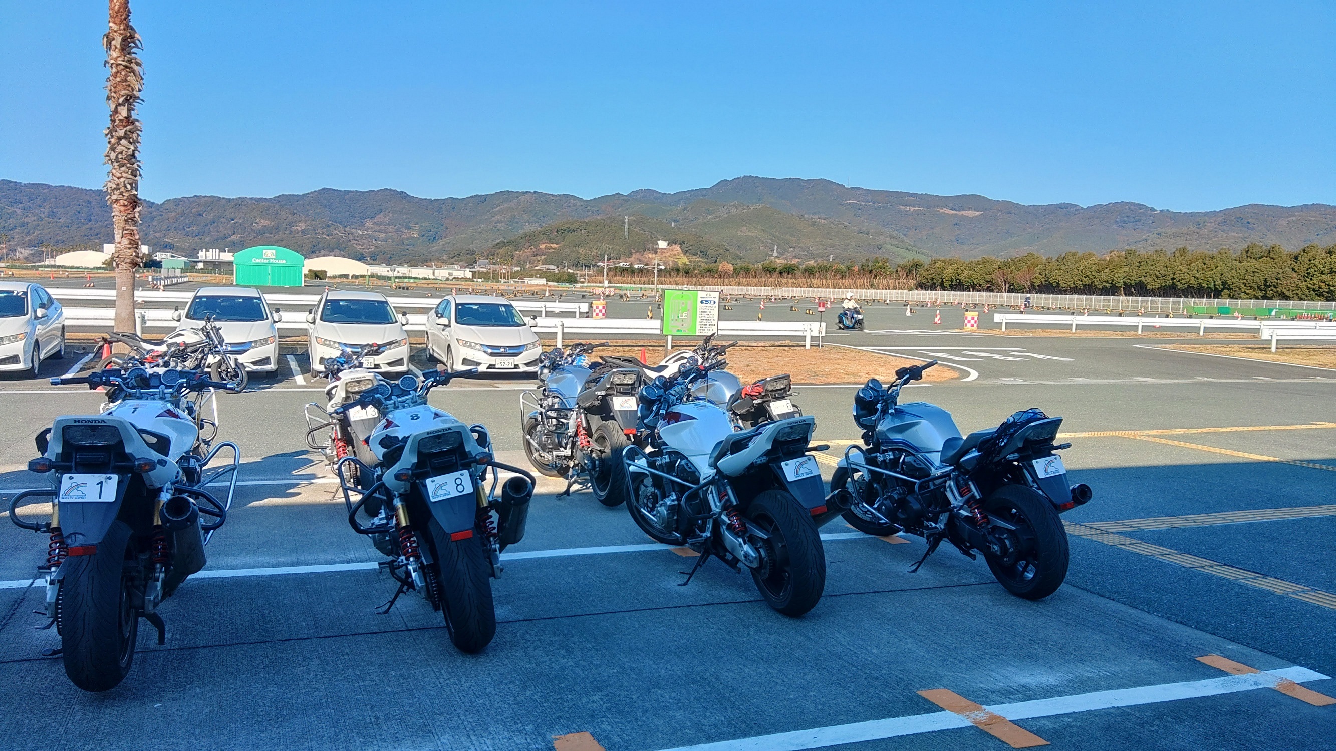 天気は良く気温も低いが凍えるほどではなく、春先の雰囲気。参加者は20名、バイクは650をレンタルしました。イントラメインはK田さん、サブがN村さんでした。最初は加減速で、加速で後ろに荷重、減速で前に荷重するように重心を意識する練習をします。腕(ハンドル)に力が入らないように重心を保つことが大事のようです。加減速は今一歩うまくできません。次はオフセット走行で加減速で意識した重心の動きを試します。鈴鹿で750Xに乗ったのもあってか、650のホイルベースの短さが気になり、安定感が感じられないです。ここでN村さんからしっかりインに入ることをご指導を受け、そうすると結構安定しだします。午後からはコーススラです。結構細かい90度以上回るターンが続きます。ここでK田さんから、細かいターンで減速しすぎて失速直前との指摘を受けました。確かに細かいターンでは途切れてしまう感じを受けていました。たぶん、先が見れていないためだと思いますが、あまりペースは上がらなかったです。最後はまたオフセット系の練習ですが、細かいオフセットと長めの加速区間をつないだコースです。最後の最後にN村さんについてもらい、アクセルが荒いと20年間言われていることを言われました。宿題でまた来ます、と言っておきました。49kmほど走行しました。次回は来週オフ中です。