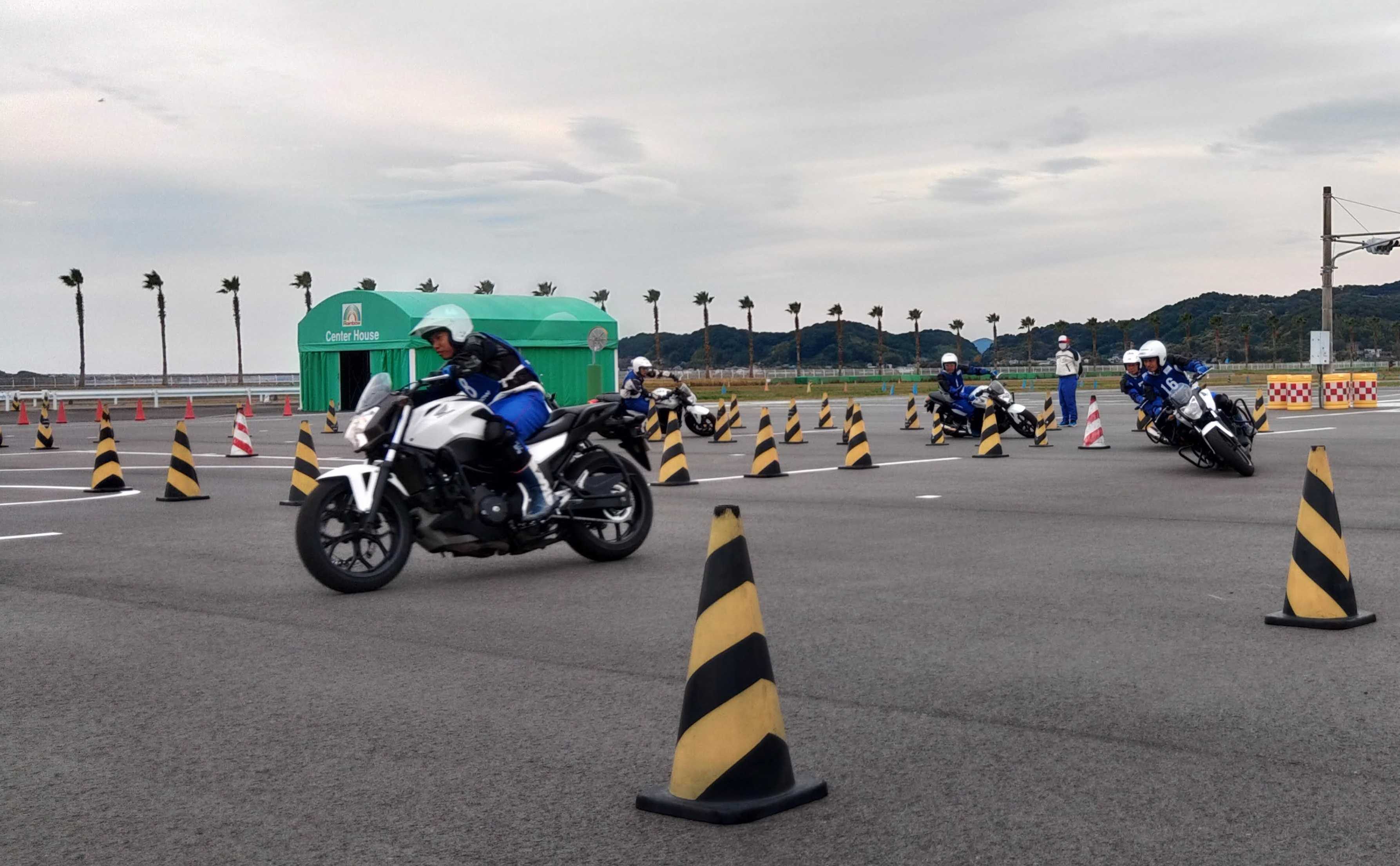 以前はホンダくくりで行われていたインストラクター大会ですが、コロナの影響で3年前から中断していて、今回はホンダではなくレインボー(系列会社)主催の競技大会ということで、サーキット系(鈴鹿、もてぎ)は参加していません。埼玉、和光、浜名湖、福岡、熊本の各代表3名ずつ+レジェンド(過去のインストラクター大会で優勝経験のあるS木さんとS浦さん)2名の17名の参加者です。昨日は四輪系とバイク8の字を実施、今日は昨日の予定から繰り越されたパイロンスラローム、コーススラローム、そして一本橋(試験は15mですが、ここでは10m)を実施。私は9時くらいに着くように家を出たつもりでしたが、平日の高速の混み具合を把握できておらず、浜名湖に着いたのは9時10分過ぎくらいでした。受付などをしていると、パイロンスラロームは最後の5名を見れてくらいでした。残りコーススラロームと一本橋を見ました。コーススラ途中で3mピッチ→3.5mくらいで出口奥にはパイロンがあり、大回りできないレイアウトで、インストラクターの方でも数名パイロンを倒したり、曲がり切れなかったりしていました。コーススラロームはK村さんが速かったです。一本橋は1分越えが皆さんの目標ですが、結構波乱で、粘りすぎでエンストした方も数名いました。1分越えができそうなメンバーは粘りすぎてエンストか脱輪でした。結局公式に1分越えたのはY木下さんだけだったのではなかったかな。閉会式までには残っていなかったのですが、たぶん総合優勝は浜名湖だと思われます。追記総合個人は浜名湖センターのN村さんでした。来年からはレジェンドですかね。K村さんは、一本橋の落輪が痛かったですね。