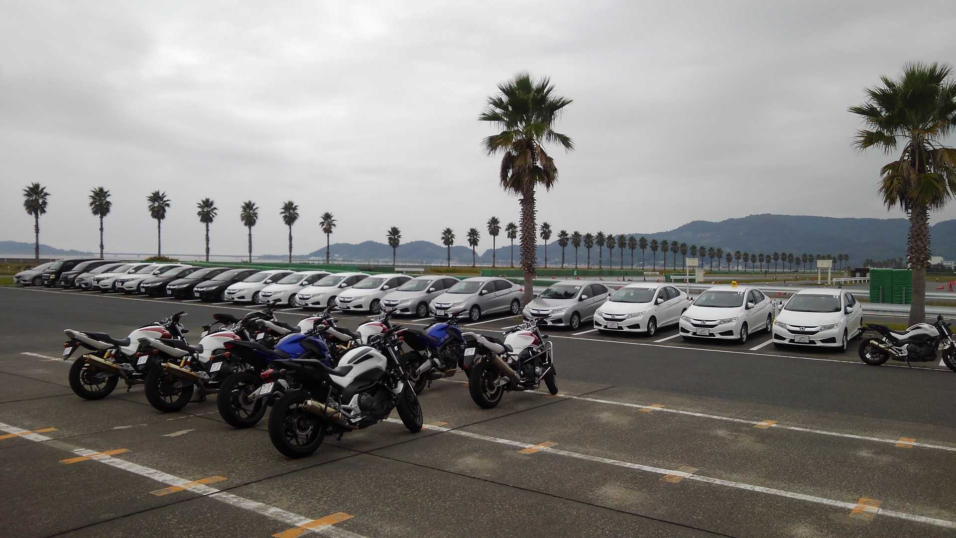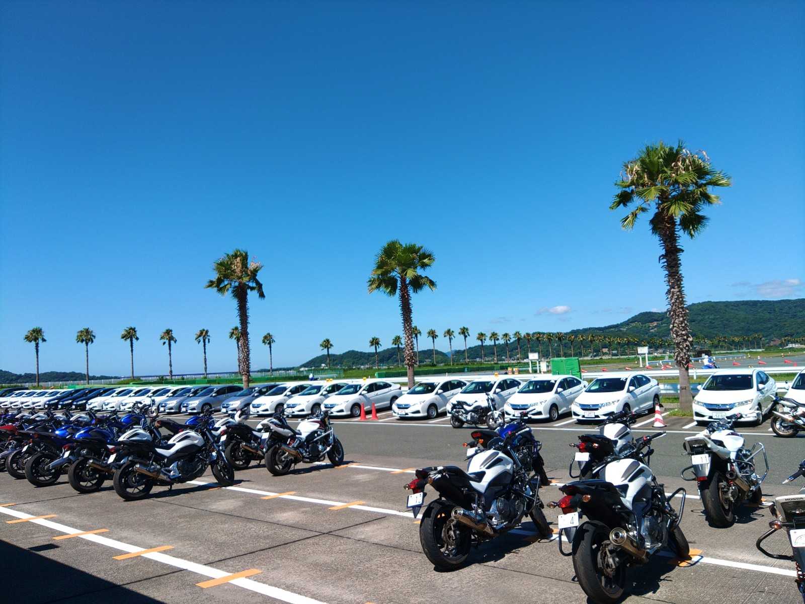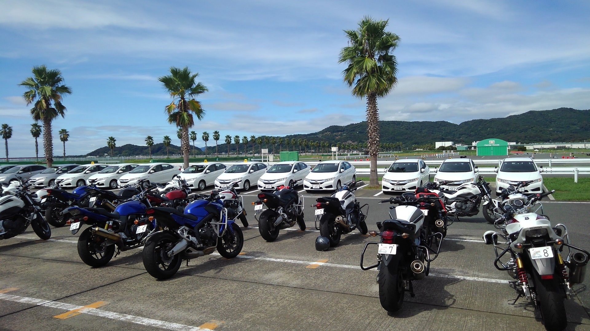性懲りもなくHMS初級1日コースへ参加しました。ここ2,3日は不安定な天気で、浜名湖へバイクで向かう際も豊川付近で小雨が降りだし、大丈夫かなと思っていましたが、1日炎天下と言うわけでもなく、雨が降るわけでもなく、夏の時期としてはまずまずの天気だったのではないのでしょうか。7月に受講したときは15名ほどの参加者だったのですが、本日は連休に入ったところも多いのか、30名以上多分35人くらいかな、の参加者でした。チームを「発進も自信がない」チーム、「HMS参加3回以上」チーム、その他の3チームに分けてスタートです。自分は3回以上チームに入って練習です。まずはブレーキングからでしたが、通常ブレーキングの練習をするスペースは「その他」チームが使用していたので、簡易にパイロンで短いコースを作って練習。さほどスピードもでず、いまいちか。その後市街地コースでコーススラローム。午後からはストパイ、オフパイのおきまりパターン。でも自分としてはストパイが1速で以前よりリズミカルに走ることができることが増え満足気味。オフパイは直線で減速しすぎと指導を受ける。ブレーキは次のパイロンにバイクが向くまでに終わるタイミングで良い、かけるのをもっと遅らせる、後で人の話を横で聞いていると、イントラはバイクを寝かせるタイミングと同時くらいにブレーキをかけるとのこと。やってみたが、難しい。最後にコーススラロームで終了。今回はちょっと人が多く、インストさんもうまく回せてない様子。いつも50Kmくらいの走行距離が今日は45Kmくらいだった。ちょっと物足りなさを感じた。前回が15人くらいで、ガンガン走れたので逆にそう感じたのかもしれない。帰りの高速は下りと言うこともあり、渋滞気味。それでも1時間くらいで帰宅。その後明日見るポケモンの映画チケットを購入しに、I-MALLへバイクで行って来た。バイクって便利。