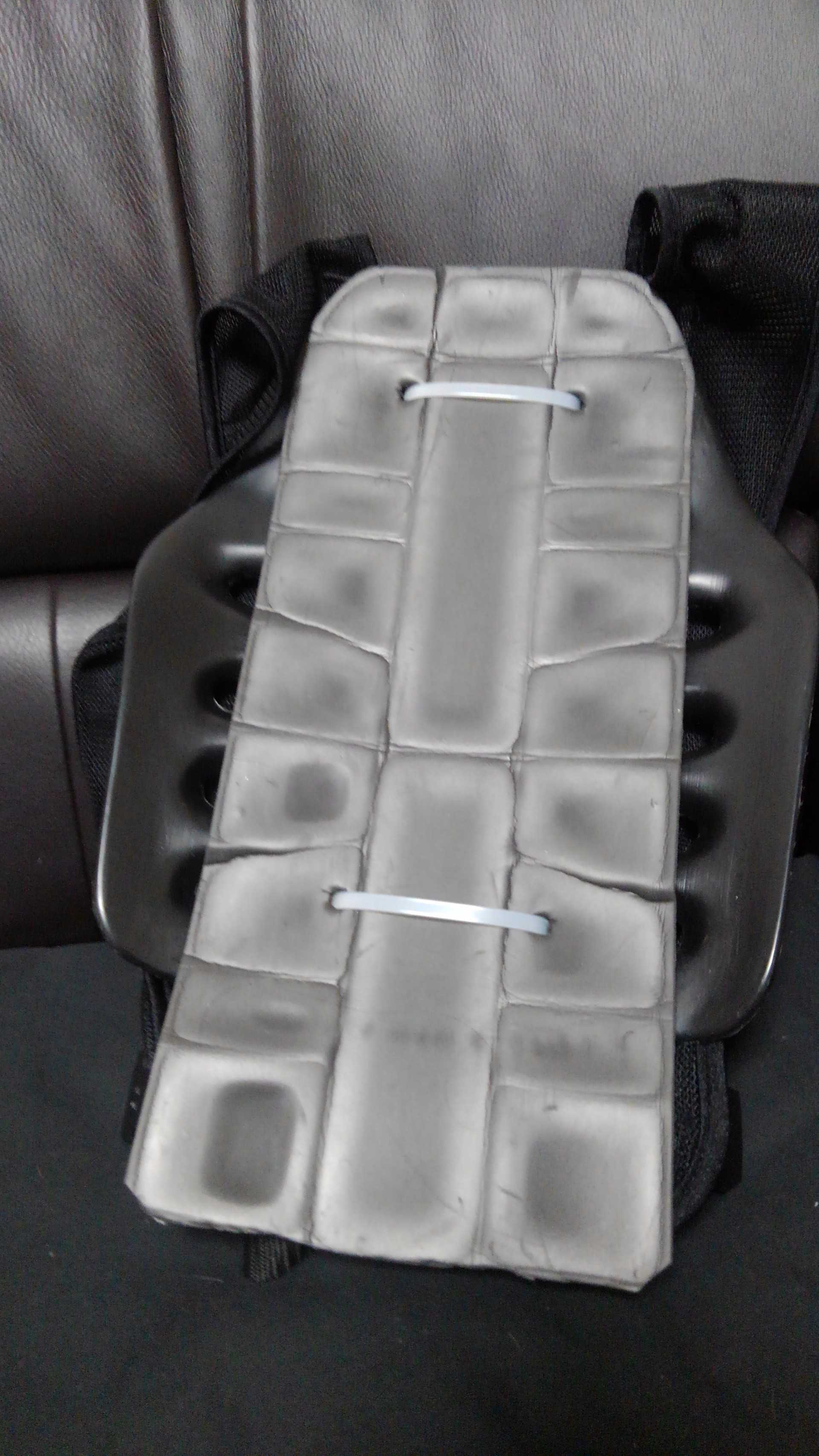 胸部プロテクターは、まだ出始めたころに買ったので、樹脂製の堅いもので胸にあたる部分が結構痛くて対策をしたかったのですが、他のジャケットを買った特に入っていたソフトタイプのバックプロテクターをタイラップで締め付けることで取り付けました。