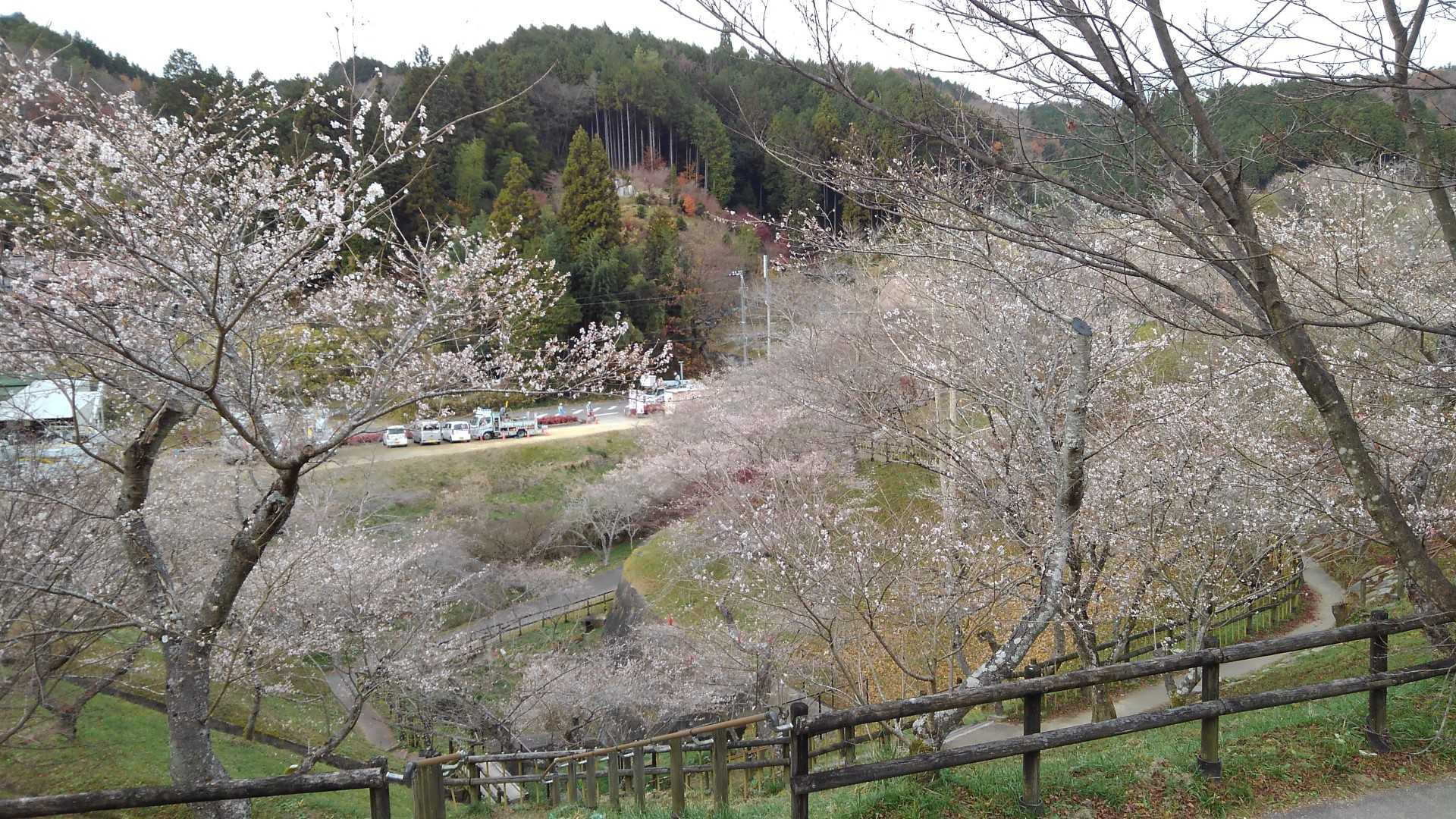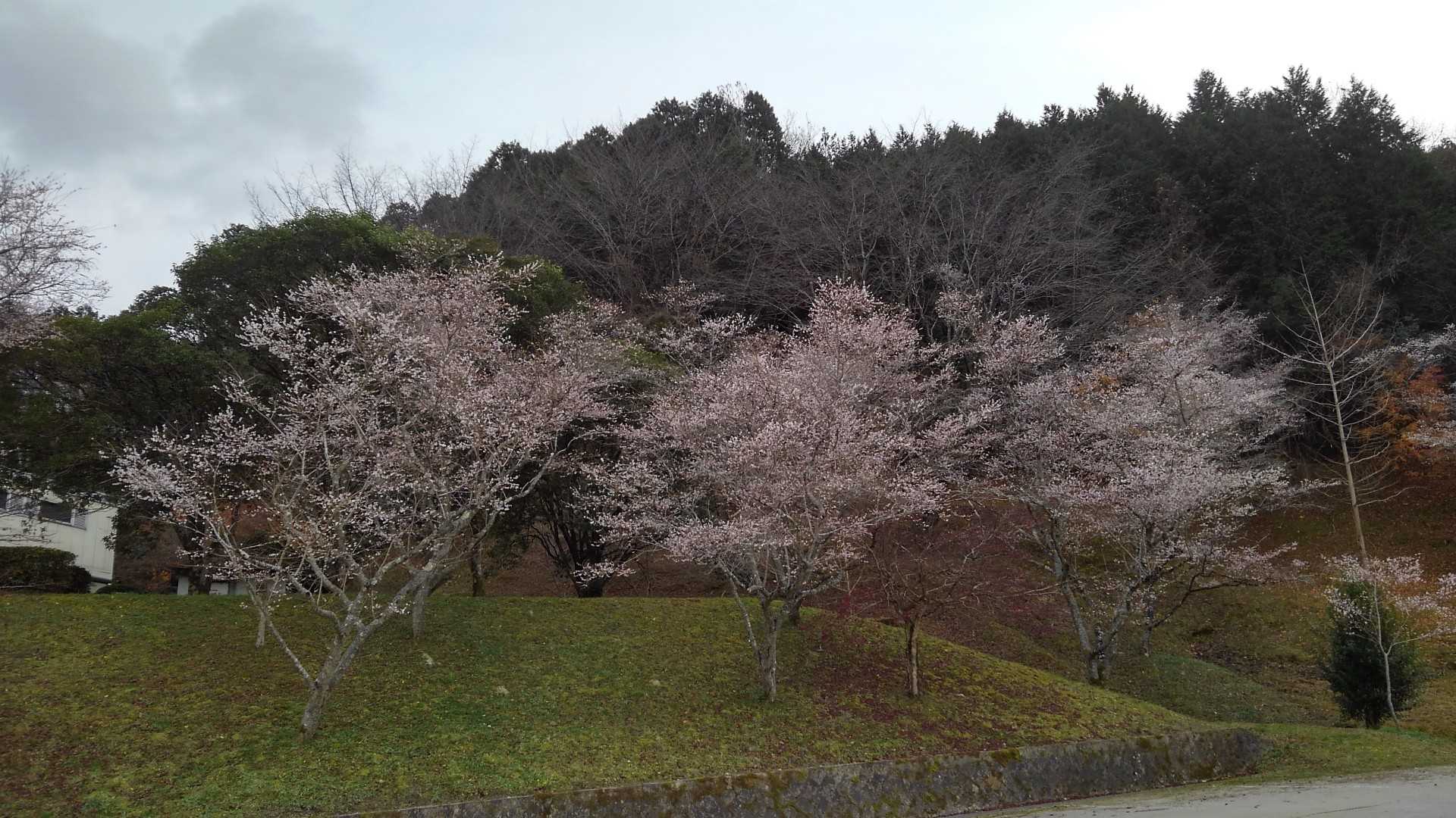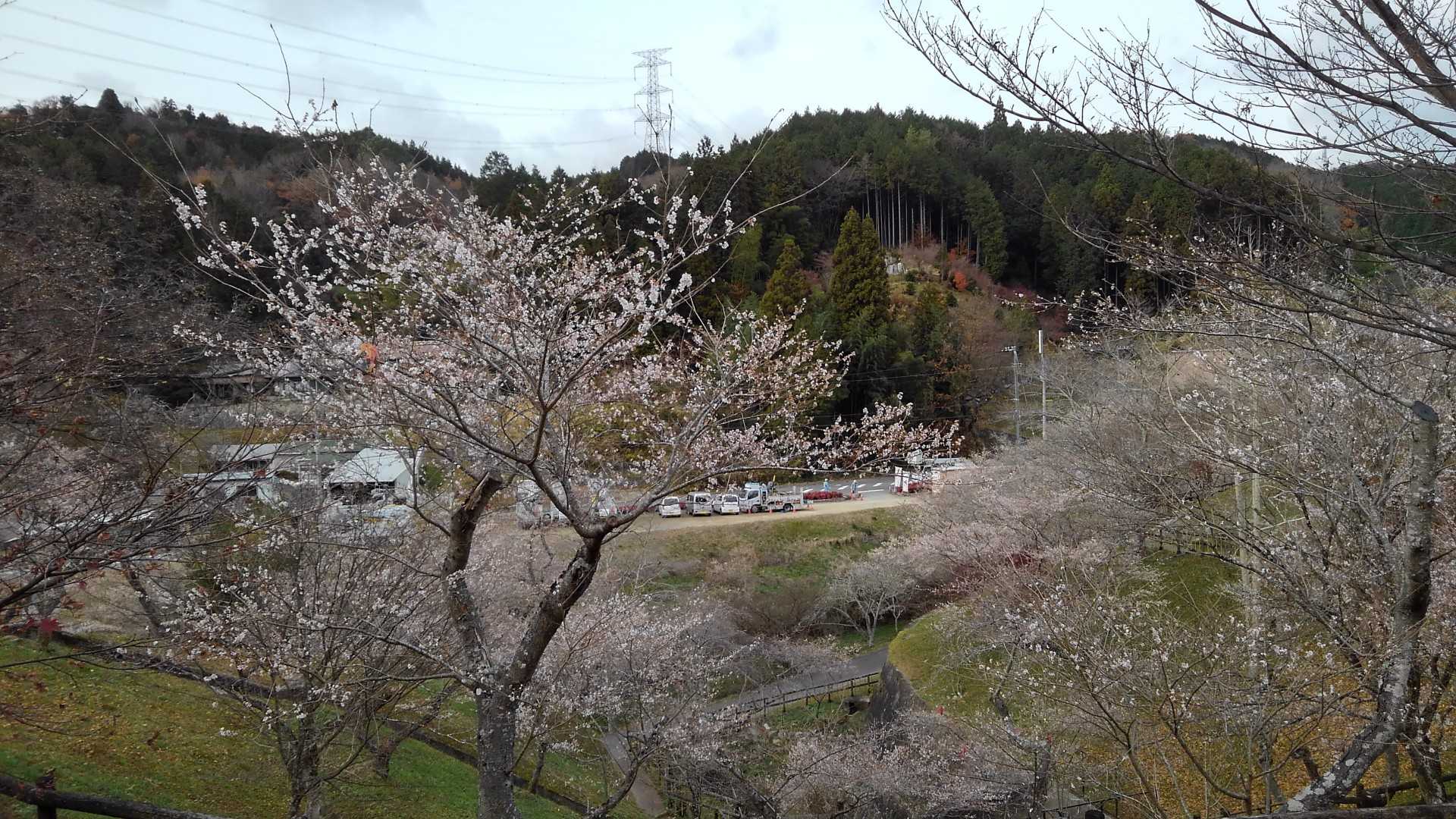 昨年に行った四季桜公園は、今年も昨年と変わらないくらいほぼ落下していたのですが、近くの小原ふれあい広場は半分以上の桜が残っていました。