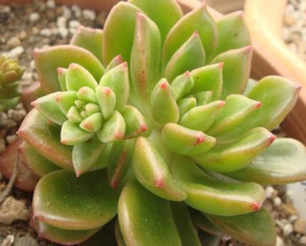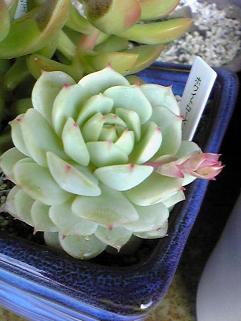 今日の天気は いったい何なんでしょうでも ベランダの多肉たちは強風にも耐えていま~す エケベリア属ホワイトローズなんとも お上品な感じがたまらな~い 花芽はゆっくりだけどのびてきていま~す エケベリア属 初恋ほんのりピンクでとってもキレイ~うしろの茜の塔も もっこもこで元気っす 初恋をよ~く見てみたら・・・・・・花芽!?かな早く 伸びないかな~