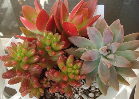 今日は 日差しがあったから気持がよかったな~ベランダの多肉たちも この寒さで一段と紅葉しました まずはレズリー家の多肉の中で只今 紅葉ナンバーワンです ハムシーもっと赤くなったら すてきだろうなぁ~ チワワエンシスほんのりピンクがたまらな~い 紅稚児です小さいお花がいっぱいこんもりと増えたらかわいいだろうなぁ~