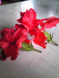先日はたくさんの方々に娘の体をご心配していただきありがとうございました。今日 病院に血液検査の結果を聞きに行き異常なしとのことでホッとしましたよ~ 実はね 今日は夕方、病院に行く予定だったんだけど朝からどうしても結果が気になり 仕事を11時過ぎに切り上げて病院にすっ飛んで行ったんです気の小さい母ちゃんでしょ昨日 足でひっかけちゃってハイビスカス・フラミンゴレッドの蕾がポロッと落ちちゃったので そのまま部屋に置いておいたら朝 綺麗に咲いていたので 写メっちゃいました~ 完全に蕾だったのに こんなにも綺麗に咲くものなんですねこれは 去年挿し木で頂き 今年初めて開花するハイビスカスなんです。あと オレンジフラミンゴと八重のピンクが挿し木に成功してただ今 蕾が上がってきています~ では 今日はこのへんで~