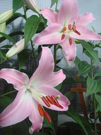 昨日は一日中 大雨でうんざりでしたが~今日はだんだんと天気が回復してきて いっきにピンクカサブランカこと 女王様が咲きました~3月に開花したときより 気温が高いせいか綺麗に咲いているようなきがします香りもGOODやっぱりゆりは本来の時期に咲くほうが綺麗だわね早速 切り花にして脱衣所の出窓に飾りました 逆光ですが・・・(;一_一)北側玄関のお花を少し増やしてみました夏は朝日が良くあたり 風通しもいいのでフクシアも移動させました多肉のリースはちょっと 徒長気味ですけどね~ 夏っぽいカラジュームをお迎え~この寄せ植えは 入れ替えしやすいように鉢やビニポットをそのままいれているプランターです高低差には下に台を置いたりちょっと傾けたりして 工夫しています~ 毎日 頑張ってあれやこれやとお花のお手入れしているのに家族は誰一人として 気付いてくれませんショック・・・今日 いけたカサブランカくらいは気付いてくれるといいな~・・・ では 今日はこのへんで~