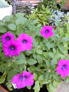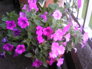 今日は朝から雨当分 梅雨空みたいです。。。 vabimariさんから頂いたサフィニアが咲き始めました明るい紫色で私の大好きなお色です~まだまだピンチをしなくてはいけないんだけど ちょっとだけお花が見たくって咲かせちゃいました全株 どんな色が咲くのか確かめてから またピンチしますね 今年 お迎えしたペチュニア・さくらさくらちゃん可愛いピンク色がなんともプリチーです最近 帰りの遅い主人たちを待っているとお酒の量が増えているような気がします。といっても 缶ビール(350ml)を2~3本ですけど。。。飲み過ぎかしらそのせいか最近 主人から「チョブー」とあだ名をつけられちゃいました私は 「ちょっとブー」だと思っていたら「超ブー」だった。。。・・・が自分では全然ブーだとは思ってないので言われた時は完全にシカトだわね では 今日はこのへんで~
